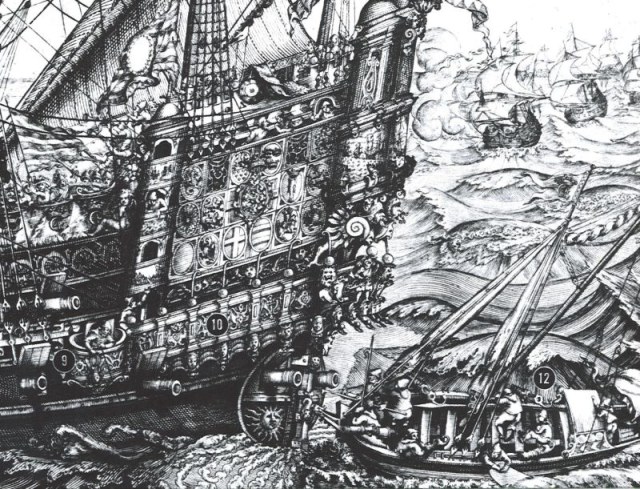 На форму шлюпки с круглой кормой натолкнула картина Battle_of_Gibraltar_1607