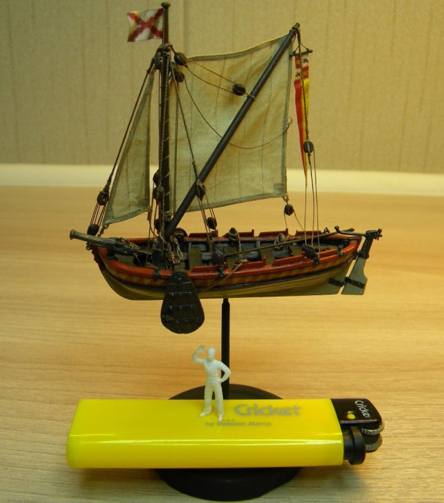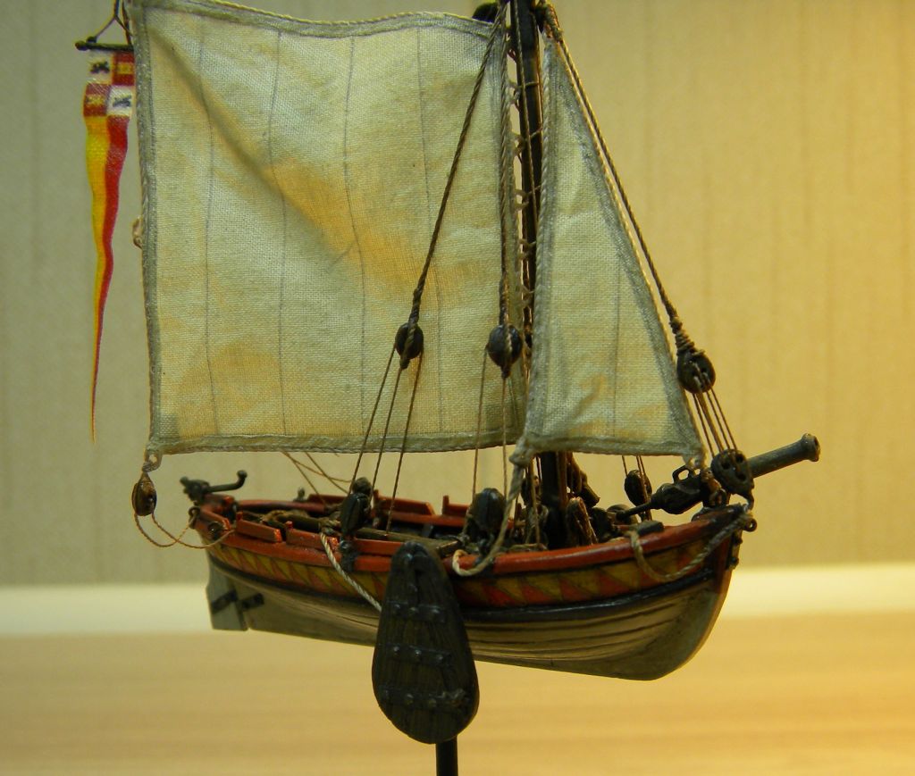 А вполне....Только ткань на парусах и тем более на флаге грубовата,грубовата.За то,что 1/100 отдельное спасибо.Пушку лучше бы в какое-то другое место,органичнее было бы,но...Зачетно,в галерее ей место.