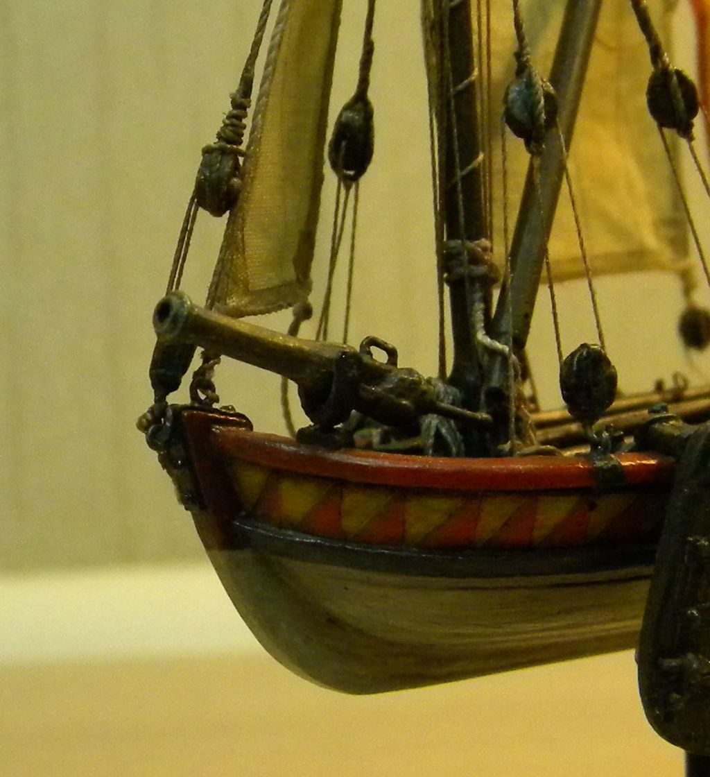 Вертлюжную пушку ,правда несколько великоватую по размерам,воткнул под впечатлением вооруженного бота с картины TRE KRONER, 1601 -фрагмент в фото...уж очень впечатлило-там на боте два легких орудия,не считая 4х мелких...но так напрягать свою маленькую лодку не стал...в общем, только слегка вооружился ...