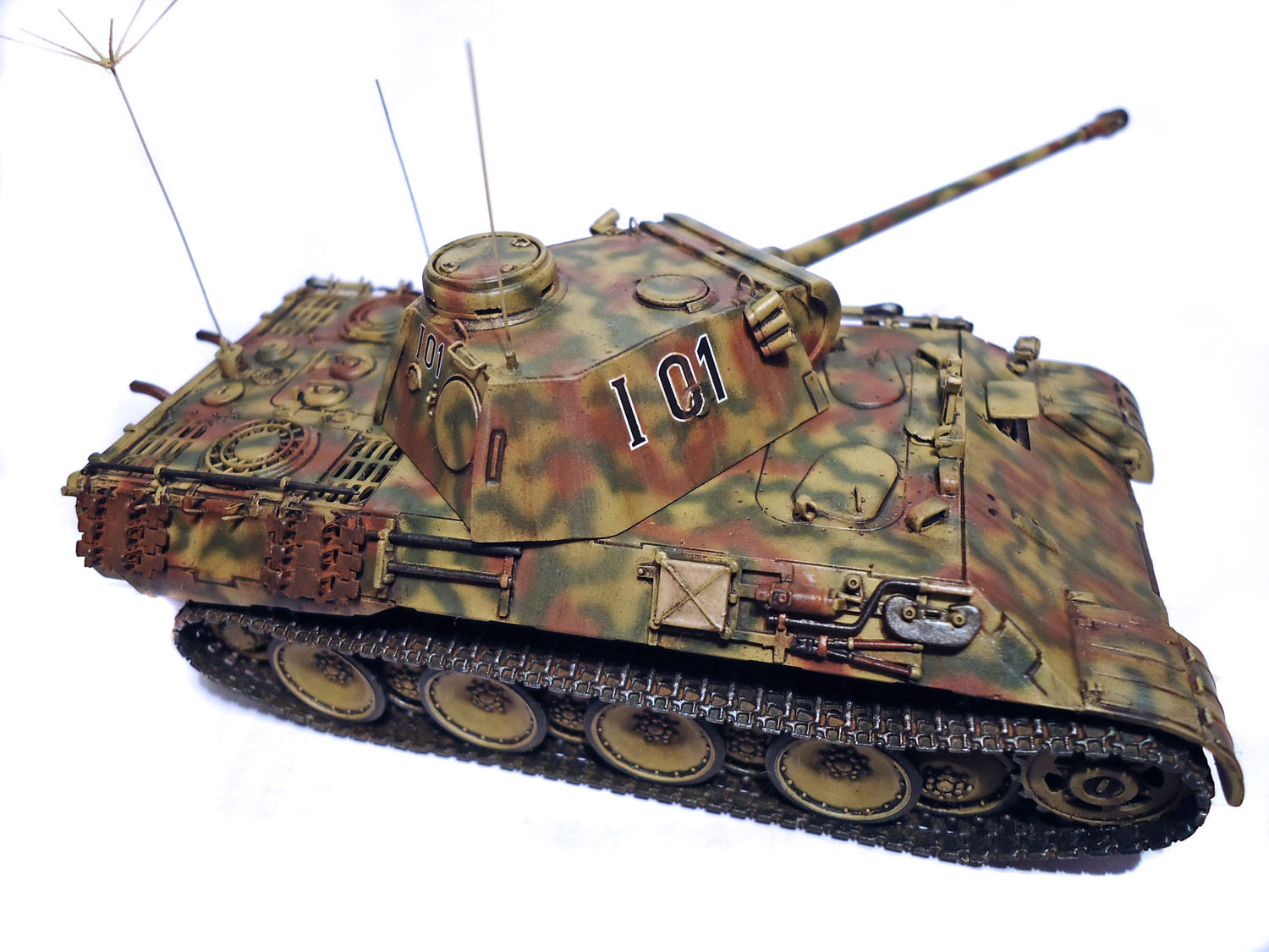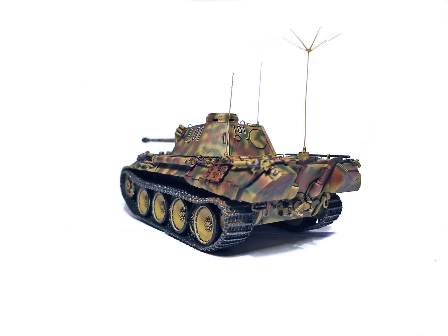 удалив коммуникационный люк на борту башни и добавив антенных выводов я получил командирскую машину выпуска сентября 1943г.