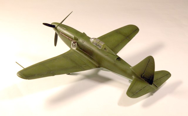 Сразу же предупрежу, что глубоко лезть в матчасть не стал, например ниши шасси оставил, как есть - не глубокими. Обидным моментом стал тот факт, что крыло, после контакта с клеем, слегка стало "играть" и горбиться. Как мог боролся с этим моментом, но до конца исправить так и не удалось. Видимо слишком мягкий и пористый пластик. Вообще, при сборке модели, ушло очень много шпаклевки, в добавок половинки фюзеляжа оказались с разницей в длину около 1,5 мм. Фонарь очень мутный и в добавок еще и пожелтел. Полировка не помогла. Но решил оставить, как есть. В остальном ни каких сюрпризов. Собрался, как самый обычный ЛНД. От себя добавил только приборную панель, кресло (их кстати оказалось не видно не только на фотографиях, но даже и в живую), изготовил "уши" воздухозаборников на капоте, просверлил выхлопные трубы, ПВД и подкосы стоек шасси из игл, колеса Экипажевские. В общем практически - изкоробка.