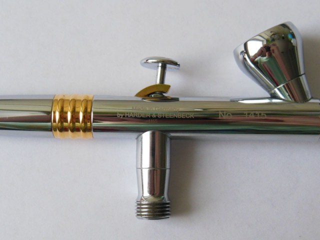 "Модель компании Harder Steenbeck, в хромированном исполнении в серии CRplus. Аэрографы из этой серии отличаются тройным внутренним покрытием из меди и никеля, а также внешним глянцевым хромированием. Данное покрытие снижает риск аллергической реакции."