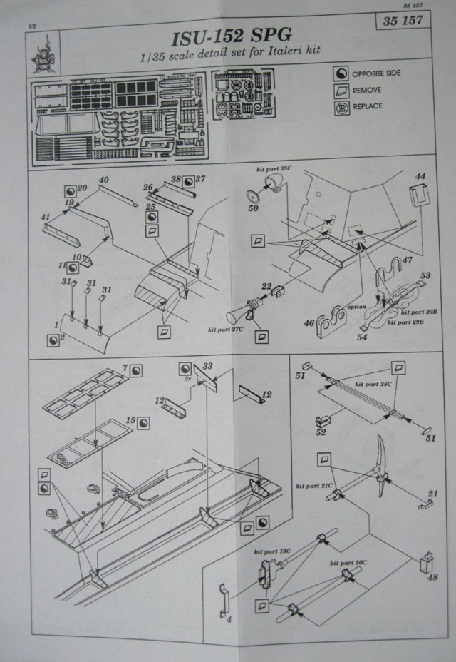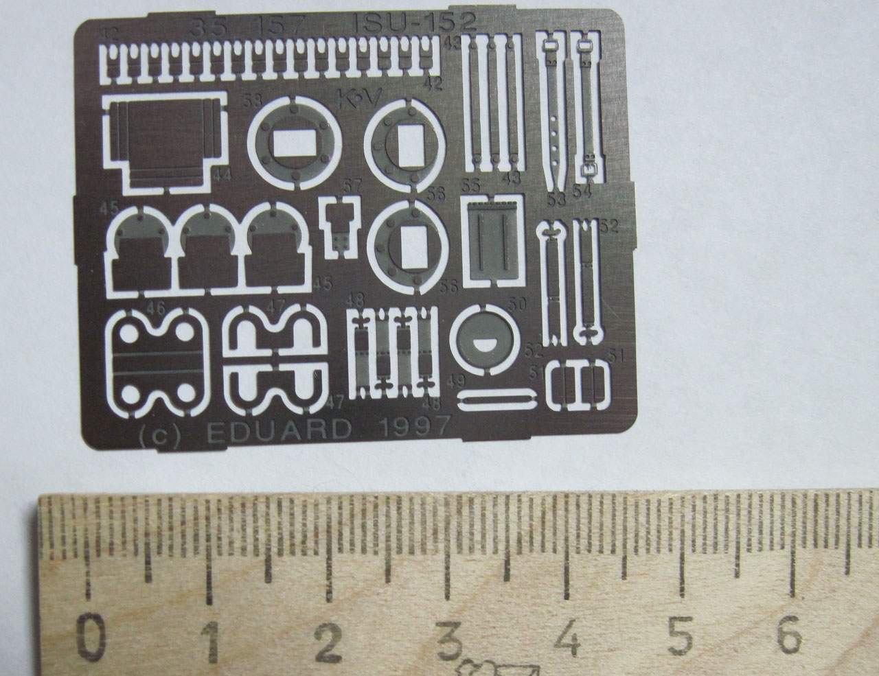 Вашему вниманию предлагается обзор набора фототравления №35157 на ИСУ-152 от чешской фирмы "Eduard". Набор предназначен для модели фирмы "Italeri", но насколько я понимаю: модель ИСУ-152 от "Italeri", это та же "Звезда". Собственно с расчетом на модель ИСУ-152 от "Звезды" этот набор и покупался. Задавшись целью найти решетки на МТО, я наткнулся на оные от фирмы "Armorscale", "всего-то" за 320 р. Но примерно столько же стоил более солидный набор фототравления от "Eduard-а". Соблазн купить за те же денюжки больше "деталек" был очень велик. И в конце концов жадность победила (кто бы сомневался!).