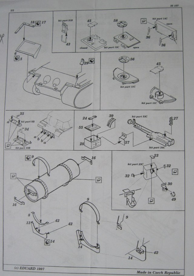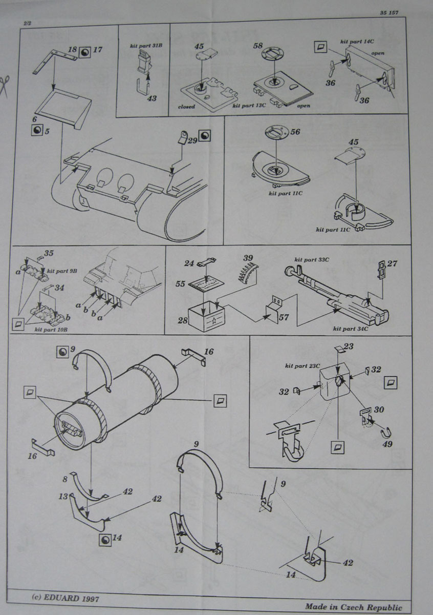 Набор помещается в стандартной для "Eduard-а" упаковке и включается в себя два платы фототравления (большую и маленькую) и инструкцию на листочка формата А5.
