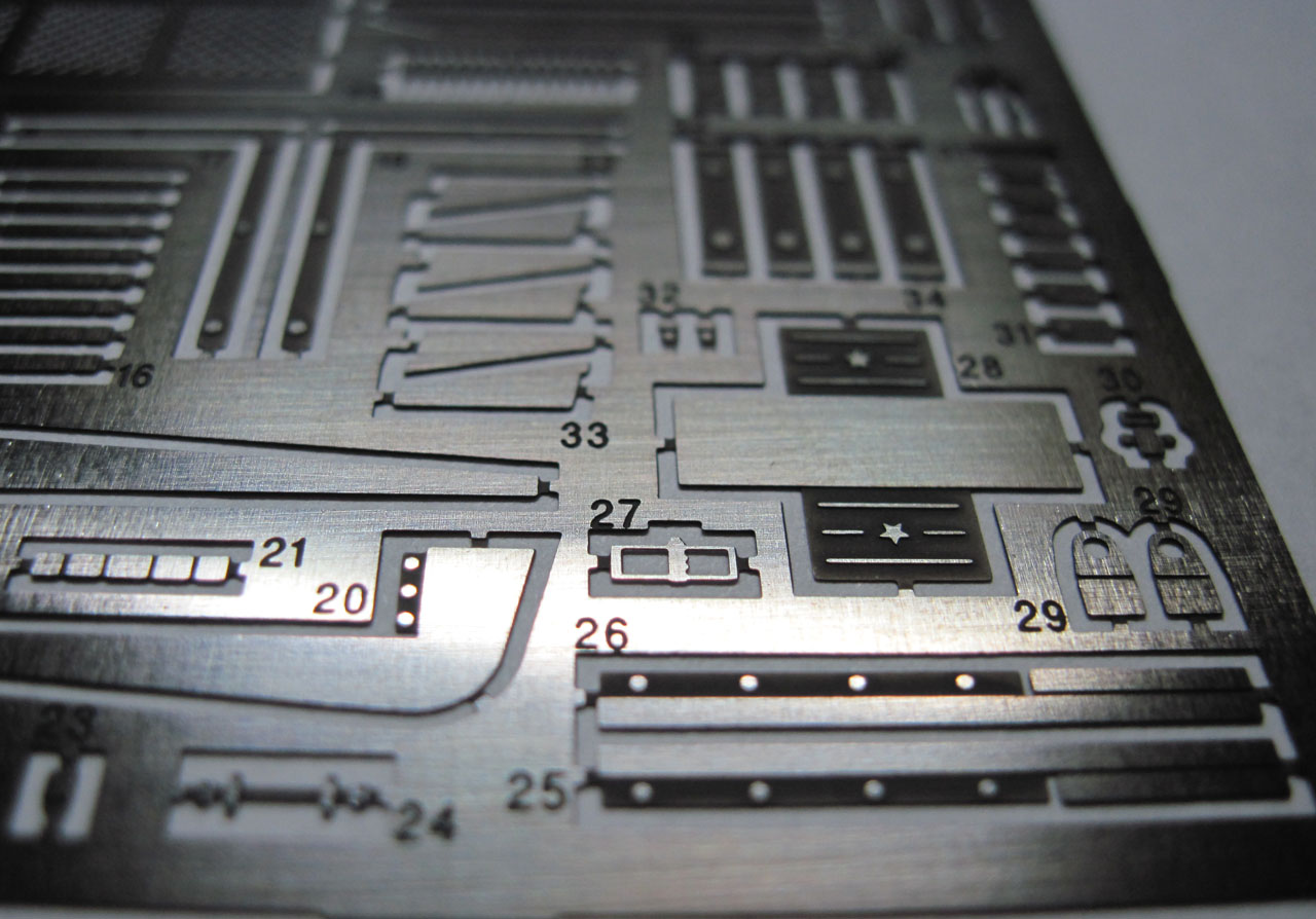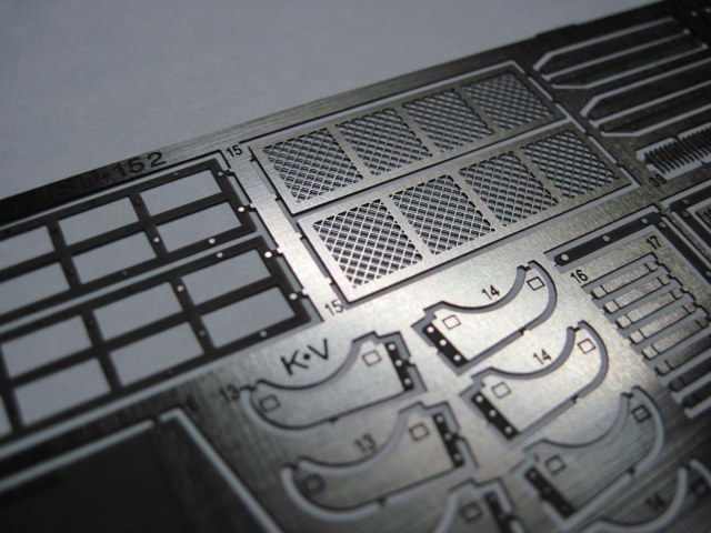 Помимо сеточек на МТО в набор входят элементы для надгусеничных полок (но сами полки в набор не входят, только крылья и уголки), крепления шанцевого инструмента, дополнительных топливных баков, приборов наблюдения, патронного ящика к зенитному пулемету (хотя плоская патронная лента - это что-то с чем-то, уж лучше смоленой пулемет купить), светомаскировочная насадка на фару и т. п.