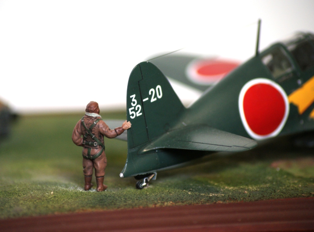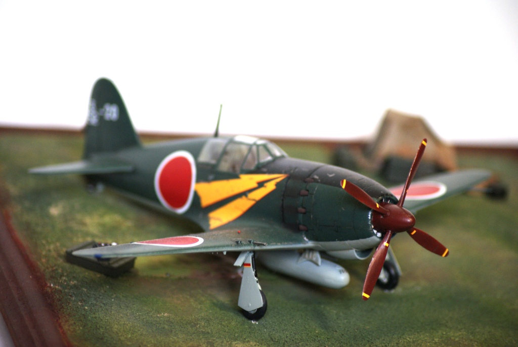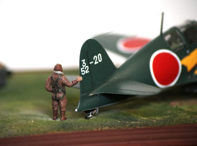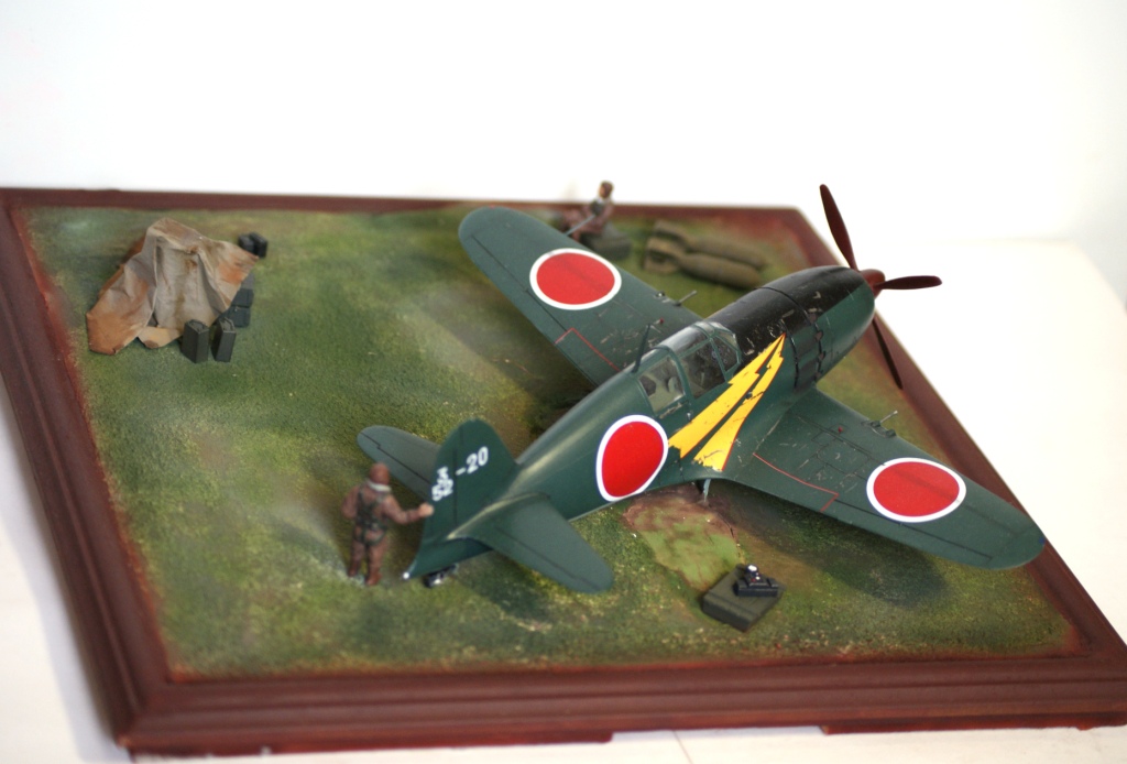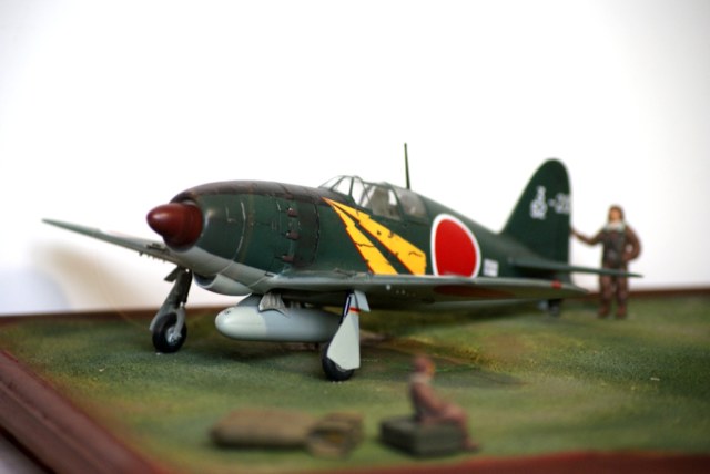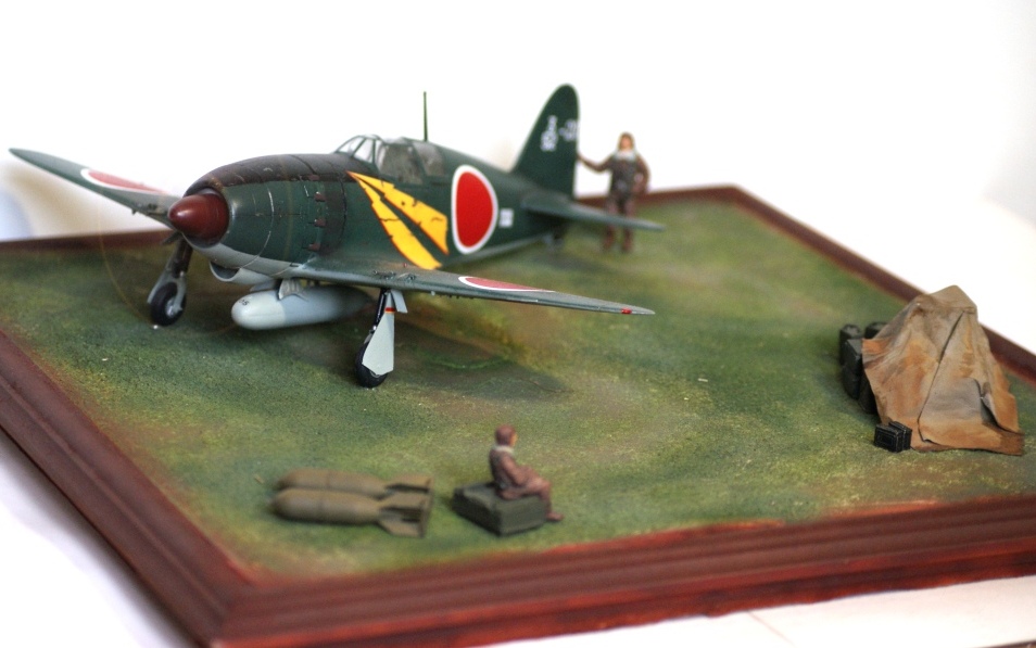 Представляю вашему вниманию свою третью попытку создания диорамы и первую по авиационной тематике. В диораме использовалась модель от фирмы Тамия Mitsubishi J2M3 Raiden (Jack). По моей задумке пилоты толькочко вернулись из боевого вылета и покинув самолеты ктото осматривает ктото отдыхает а механики (которых нет ) начинают техническое обслуживание.