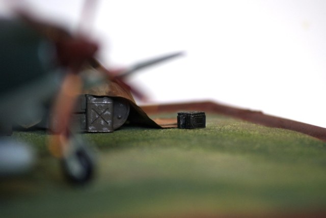 Модель собиралась идеально, вобщем как и все модели от Тамии, ни каких подводных камней при сборке необнаружено. Модель досталась мне без подставки и поскольку подставку пришлось изготавливать самому то и пришла мысль сделать небольшую диорамку с кучей всякого борохла. Хотя у меня с росписью фигур проблемы, но пилотов я всетаки решился сделать в последний момент так как на мой взгляд без фигур диорама смотрелась голой. Канистры рация бочки и прочеее барохло было взято из различных наборов.