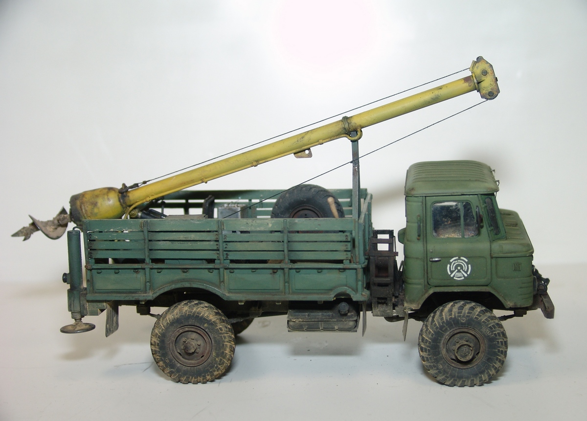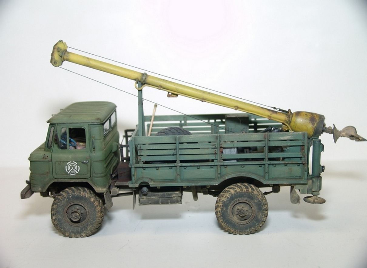 Модель подверглась серьезному перепилу и модернизации (в каробке всем известные дрова), буровая установка и прицеп самодельные. Оборудование рабочее. ))