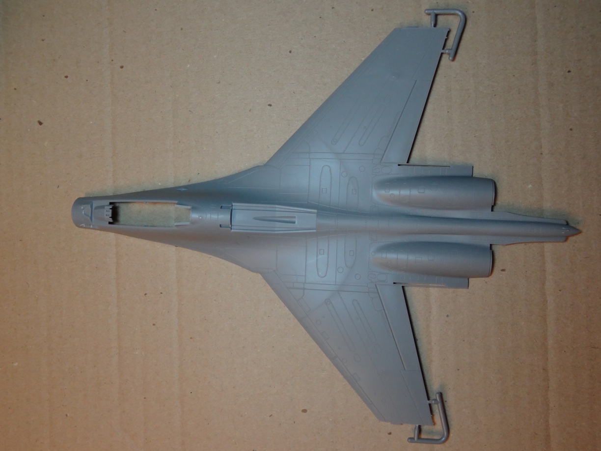 3. Ниши шасси. А конкретно те части, куда прячутся колёса основных стоек. Те, что по бокам от воздухозаборников. Мне кажется, Трумпетер набрехал здесь. Дело в том, что они развёрнуты внутрь, что очень даже режет глаз. Долго присматривался к различным фото, ну нет такого на Сушках, хоть убейте... Печально.