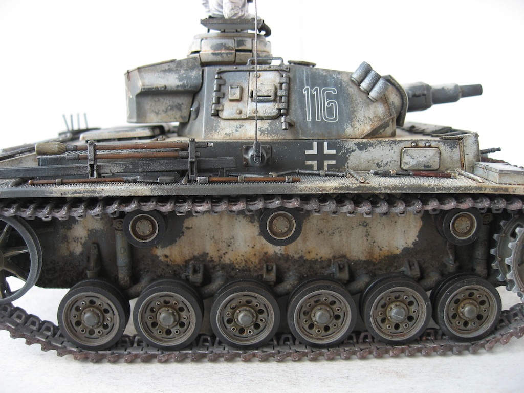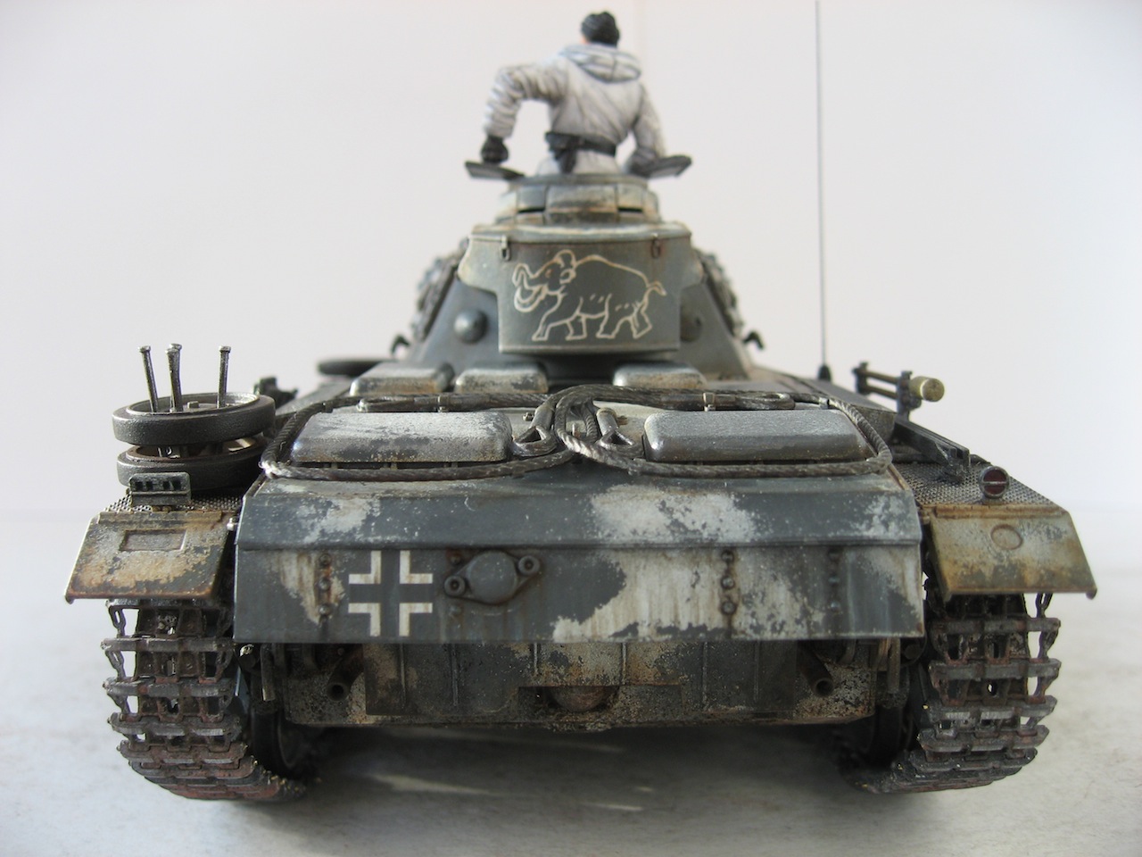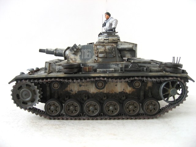 Собирал из коробки. Заменил только пулеметы на металлические от RB Model и Model Point. И, понятное дело, поставил Фриуловские траки. Красил акрилом Tamiya. Тонировал маслом и грязнил пигментами MIG. Фигурка танкиста от фирмы Evolution.