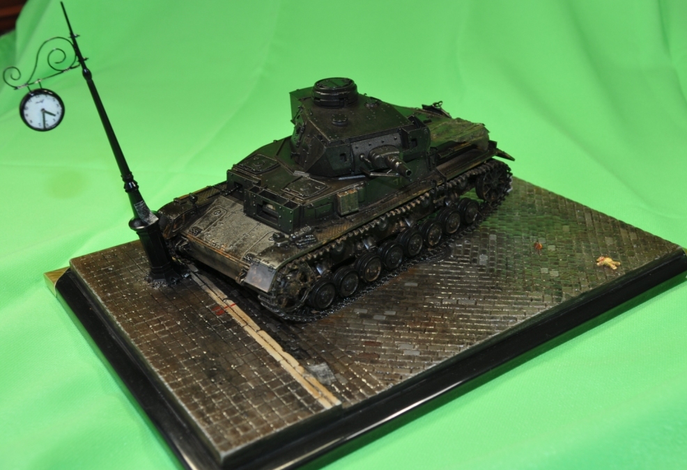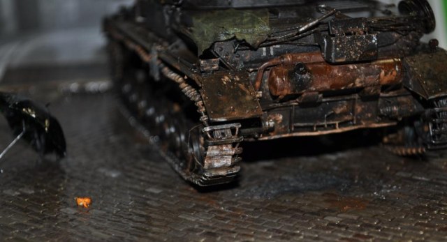 Ну внесу свои пять копеек...С аннотацией перемудрили - сюжет должен сразу читаться, без подобных историй. Танк - центральный персонаж, поэтому должен быть сделан хорошо.Но здесь по исполнению - большой минус, непонятно - то ли он подбит, то ли нет.Цвет, вообще странный, даже с учётом потемнения краски - он чёрный.В результате имеем танк на подставке, история явно "притянута за уши" - причём тут Прибалтика, категории граждан и так далее.