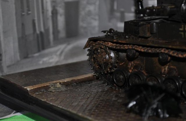 Виктор Смирнов, спасибо за тигр.Немцы напились- оригинально, а не допускаете, что они попросту перегородили дорогу? Столб не упал потому, что держится на штырях или вы думаете их просто так ставили как шахматные фигуры? Фигурки не моя стихия, может быть пока. Вам нужно почему-то действие, а зачем? По поводу скудности, нужно наверное выстроить было метр на метр и полдюжины персонажей?
