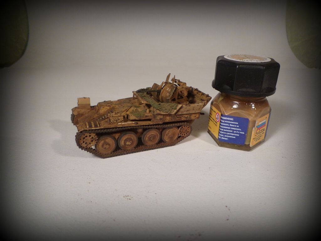доброго времени суток,уважаемые каропчане.Выкладываю свою первую(и надеюсь не последнюю)модель в 72-ом маштабе.Кит понравился,собирался хорошо.Про все или почти все неточности мат-части знаю.Увы потерял 3 важных травленых детали.Красил аканом,смывка и фильтр-масло,пигменты-мастер пигмент.Хотел сделать машину чистой и аккуратной,а получилась как всегда-побитая и грязная,потому в песок.С уважением Артем