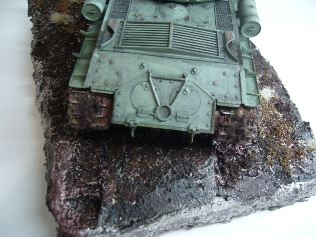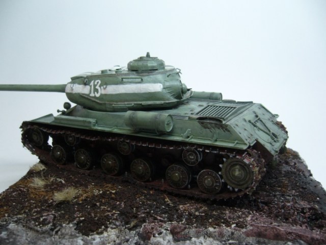 Добрый вечер товарищи моделисты! Сегодня у меня день рождения и как раз домучил иса.Решил выставить на всеобщее обозрение или избиение))) это вам решать.Полная искоропка,только подставка самоделка-гипс,пигменты,акрил,лён.первый мой собранный танк.