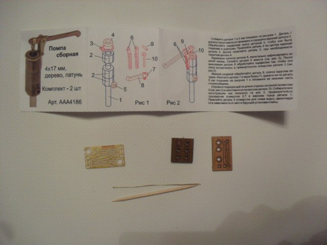 помпы- 2 штуки размером 4х17 мм. по 12 деталей в каждой, дерево и латунная травленка