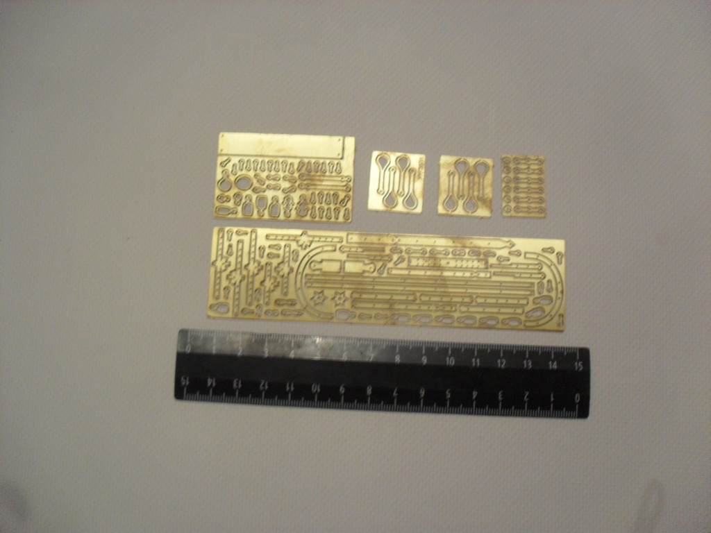 Металлические детали помещены на 4-х пластинах травленки из латуни.
