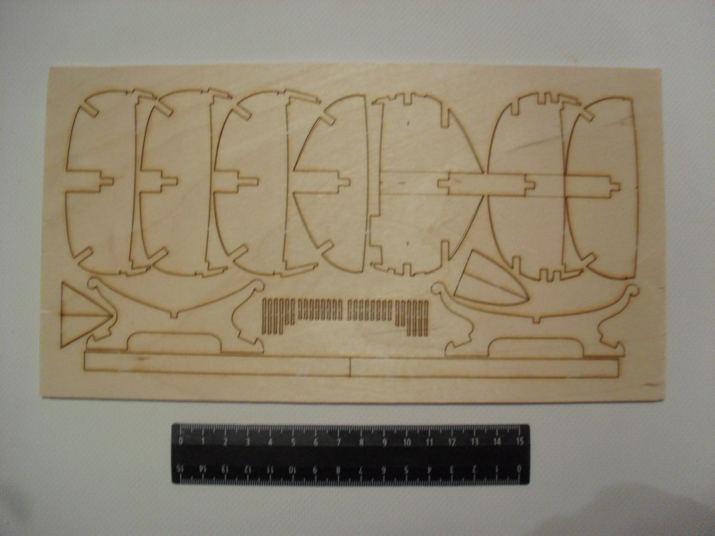 Детали силовой конструкции размещены на 4-х листах фанеры толщиной 1.6 и 3 мм.