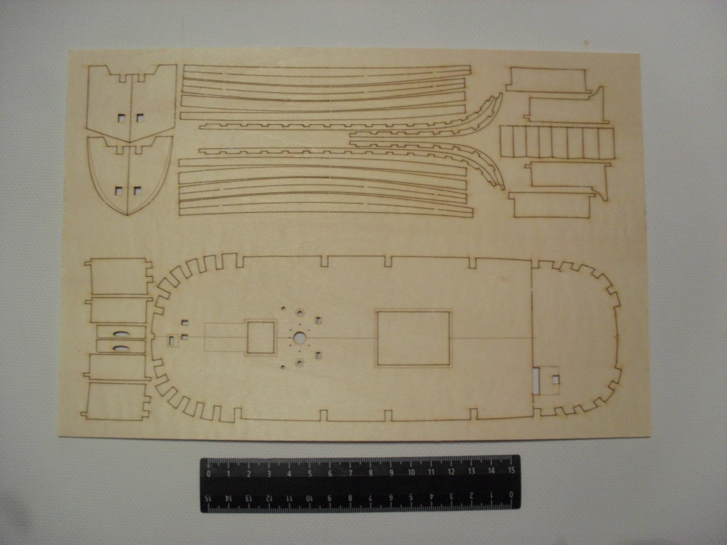 Лазерный раскрой каждой доски обшивки и деталей. Двойная обшивка. Уровень сложности, заявленный производителем: 2 по пятибальной системе.