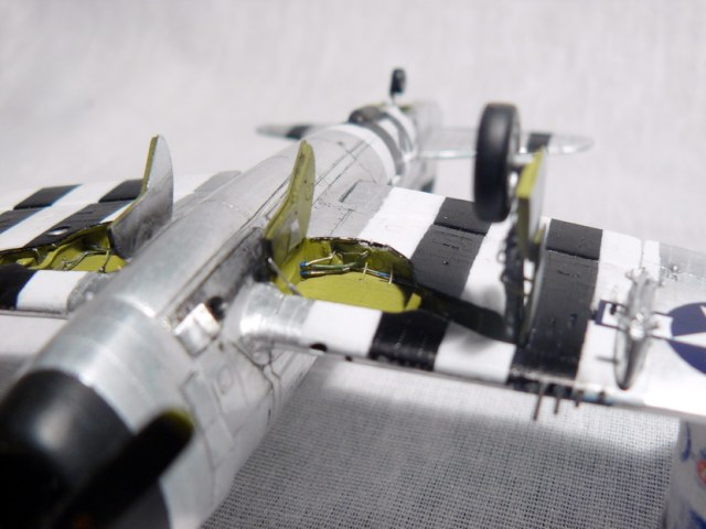 Для приведения модели в соответствие габаритам фюзеляж и киль были нарощены и обточены по месту. Донором оперения стал P-47D-11 НОВО. Пилоны подошли от P-47D-25 НОВО. Кстати, нововский Р-47 D-25 влетает в чертежи Грейнджера по габаритам и расшивке «на раз».