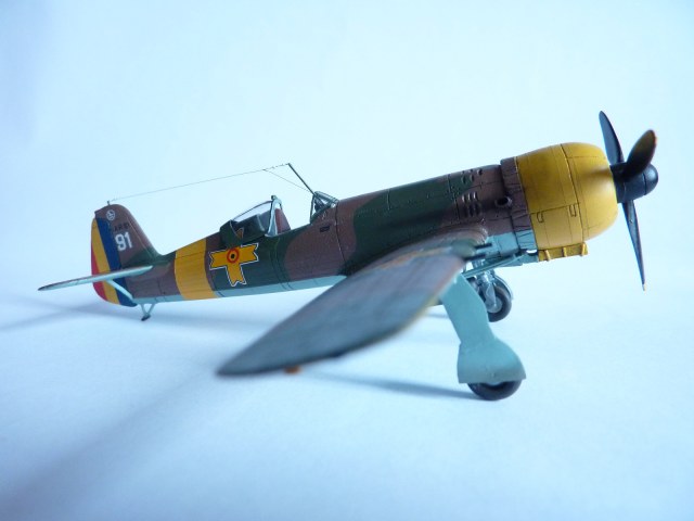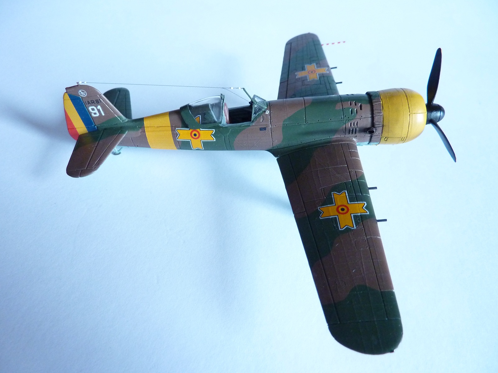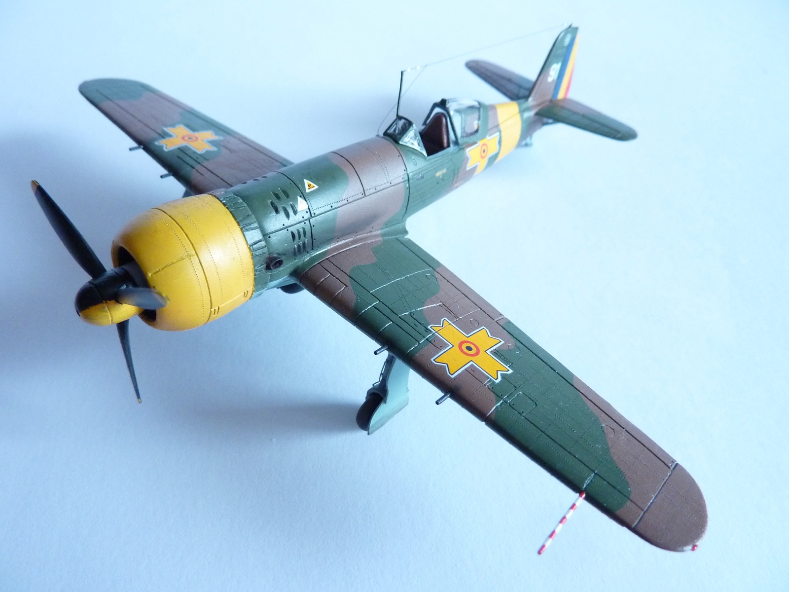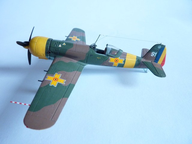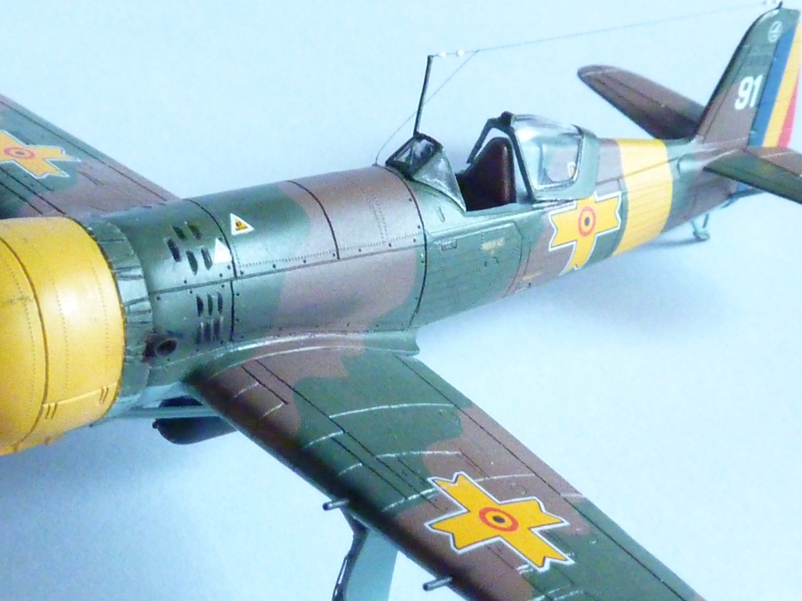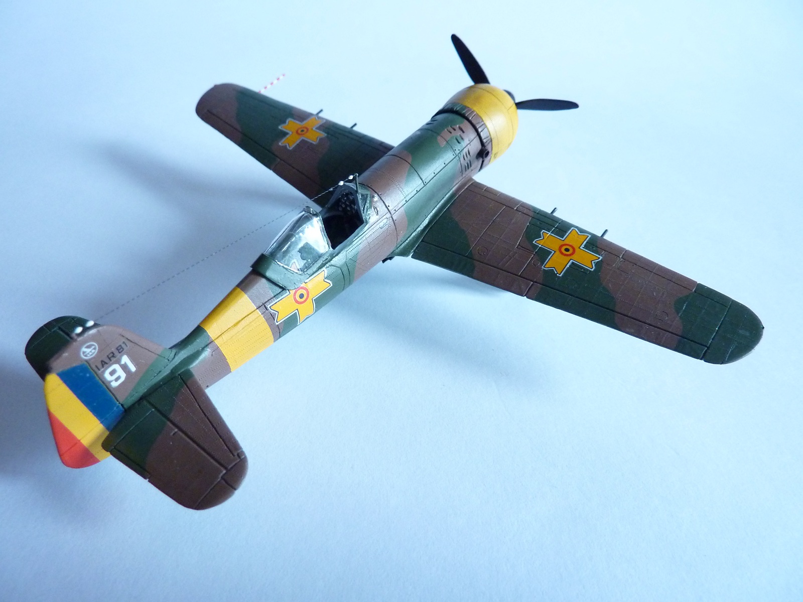 Немного о прототипе: IAR-80-истребитель, разработанный румынской фирмой IARBrasov. В апреле 1939 года шеф-пилот Димитру Попеску впервые поднял машину в воздух. Заводские испытания проходили на аэродроме в Брашове. Полученные характеристики истребителя оказались очень хорошими, и после ряда доработок самолёт был запущен в серийное производство. Самолёт выпускался в разных модификациях (IAR-80/A/B/C,IAR-81/A/B/C) и отличался в основном двигателями и вооружением.