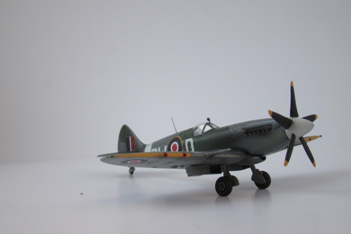 Здравствуйте. Представляю на Ваш суд модель самолета королевских ввс. Spitfire был выдающимся истребителем. Он являлся в высшей степени совершенным, сочетая абсолютную завершенность форм с пилотажными качествами, не превзойденными никем. Это был самолет-мечта летчиков-истребителей - быстрый, смертоносный и послушный. В ходе войны Spitfire непрерывно модифицировался и совершенствовался,и хотя история его развития выходит за рамки этого выпуска,но некоторые факты должны быть,по возможности, упомянуты. Весьма важным является то,что Spitfire оставался истребителем первой линии в течении всей войны и на протяжение этого периода, действуя на всех фронтах,участвовал во всех основных воздушных операциях RAF. Другие интересные факты касаются производства и летных данных: всего выпустили 20351 Spitfire и 2408 Seafire (морской вариант Спитфайра,являющийся развитием стандартного Spitfire Mk.Vb).От появления прототипа в 1936,до Mk.XXII в 1945, скорость Spitfire возросла с 562 до 724 км/ч,скороподьемность - с 12,7 до 22,9 м/сек и мощность секундного залпа - с 1,8 до 5,5 кг.