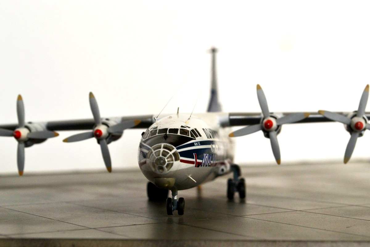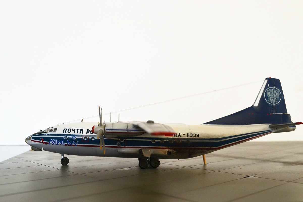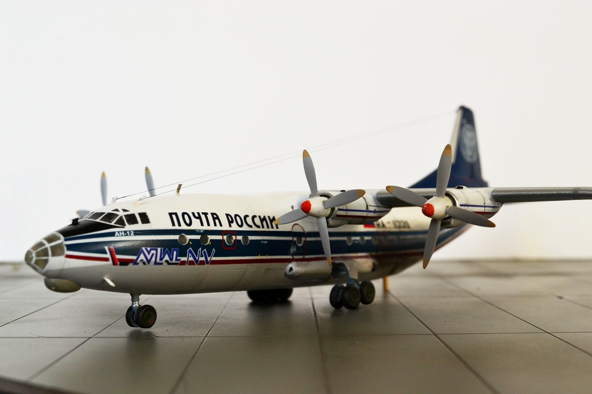Выкладываю смоляную модель самолета Ан-12. Исполнение из коробки, добавил немного антенн. БАНО. Красил акрилом и полуглянцевым лаком от ТАМИИ Декаль из набора(из-за нее собственно и купил модель) отличного качества приваривал СЕТом и СОЛом в ней есть небольшое несоответствие с иллюминаторами. поэтому на части иллюминаторов нет белой окантовки снизу. Также не сделал ПОС на лопастях-не умею, жду какую нибудь серебристую декаль.Ну и затонировал своего "почтальона"пастелью.Про косяки в матчасти и в сборке знаю-делал как могу
