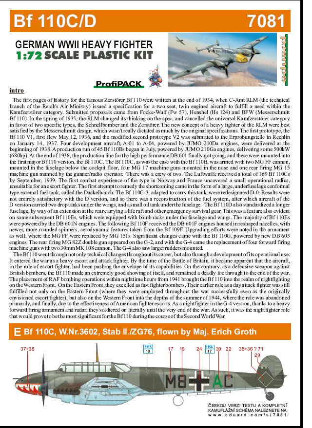 Лучшая на сегодняшний день модель 110-го мессера в 72 масштабе Eduard Bf110C/D ProfiPACK.