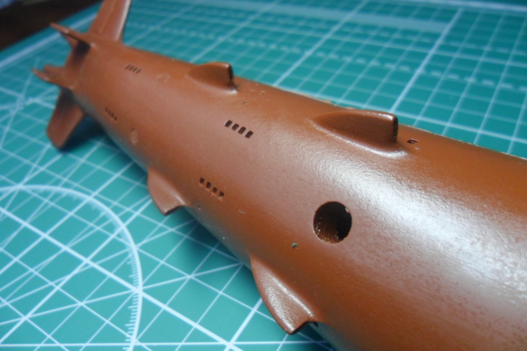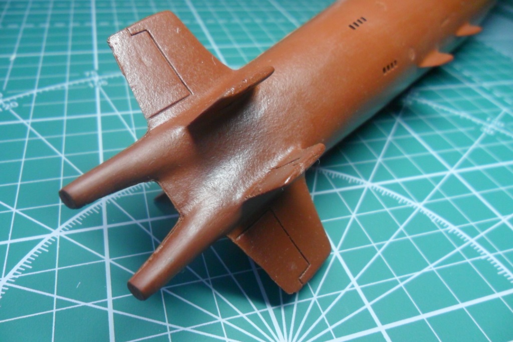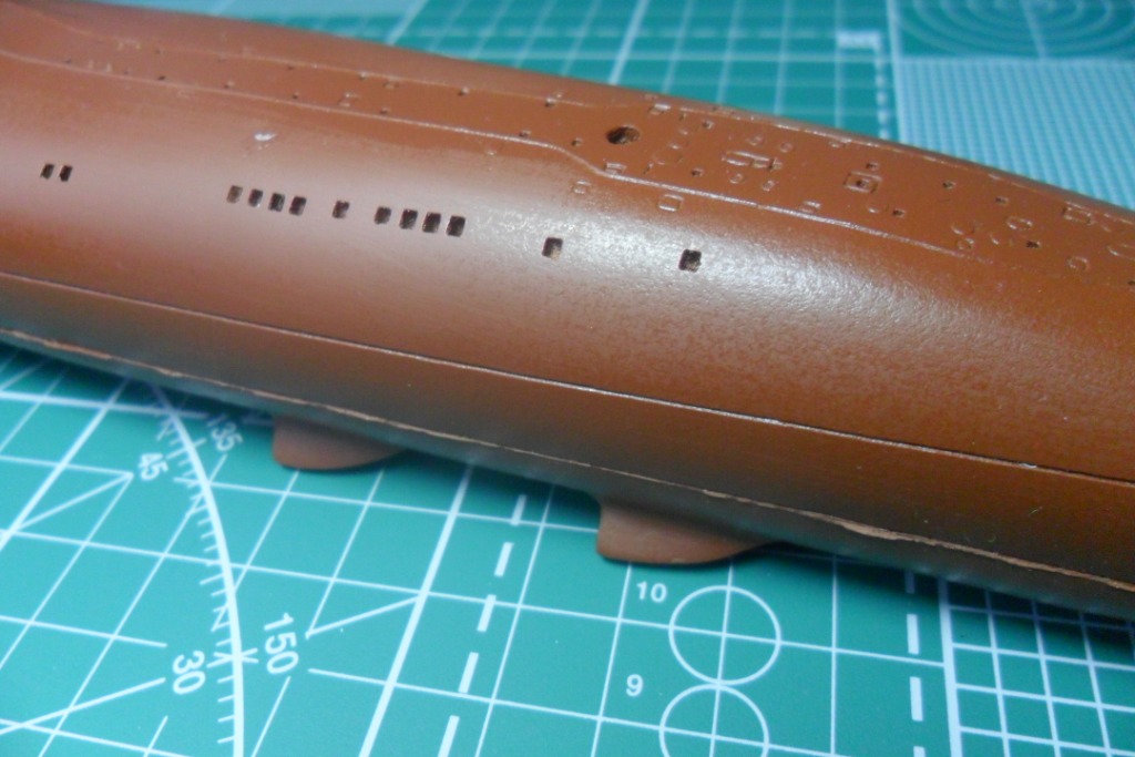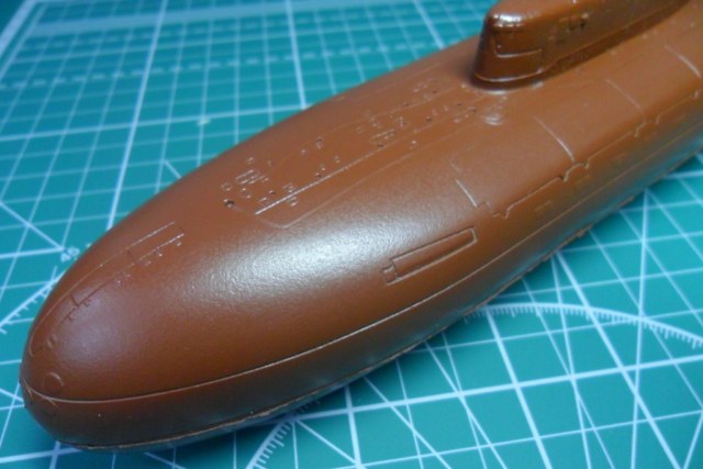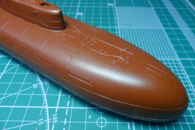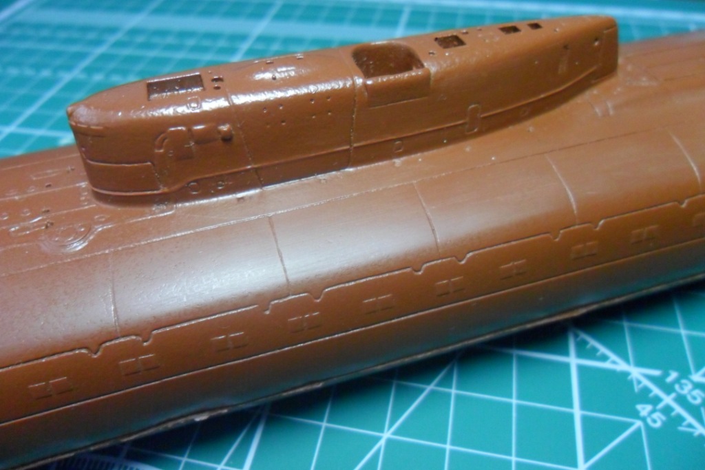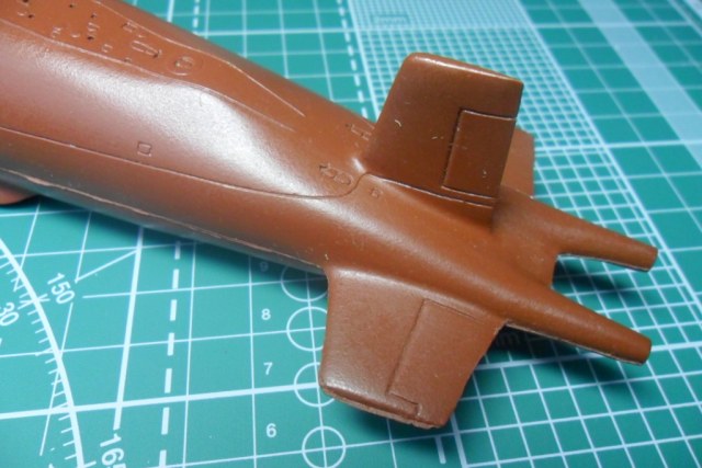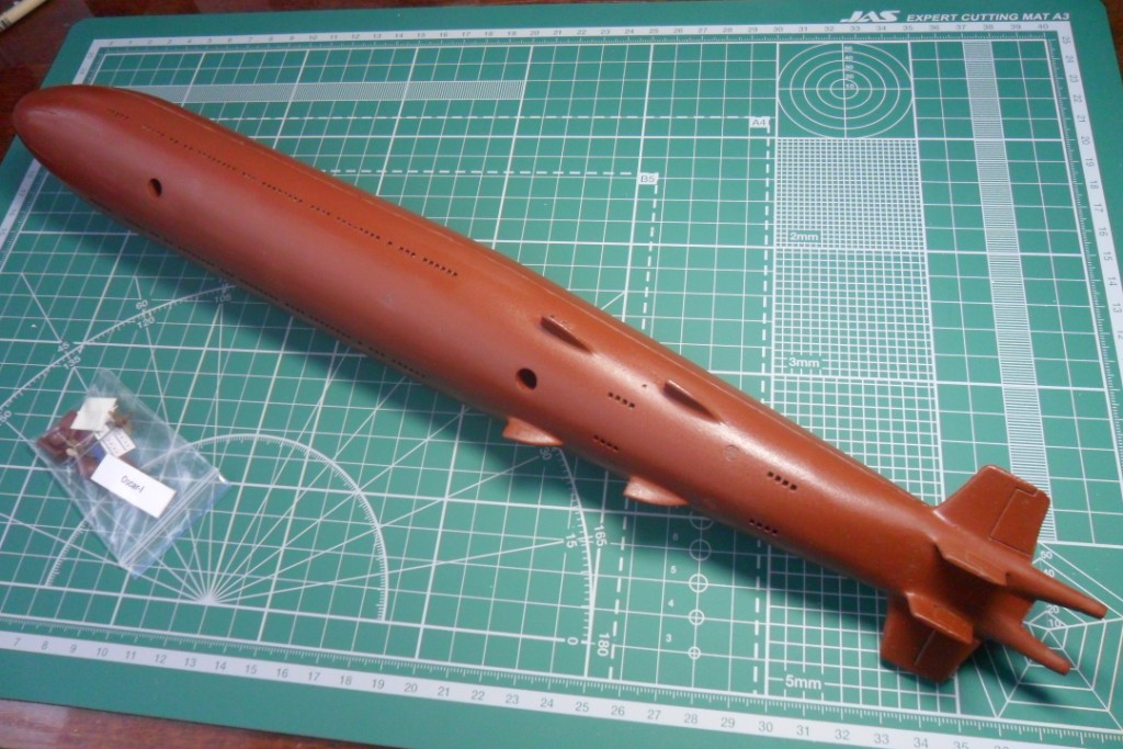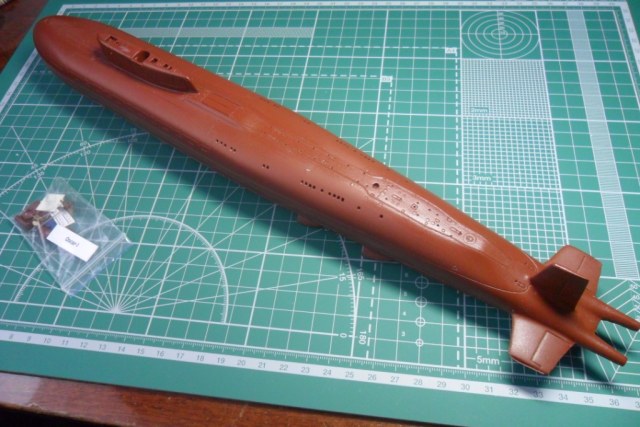 Да, у первого был прямой, а на второй субмарине пошел наклонный, под установку протяженной антенны, как на Антеях. В принципе, если есть желание собрать второго, то руль можно позаимствовать у звездовской заготовки Оскара-2.
