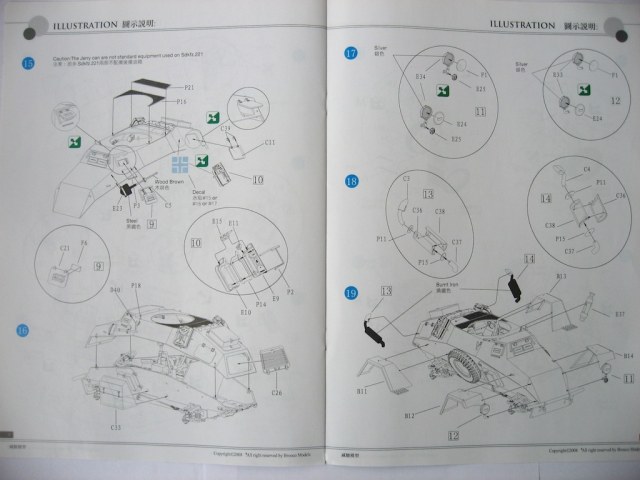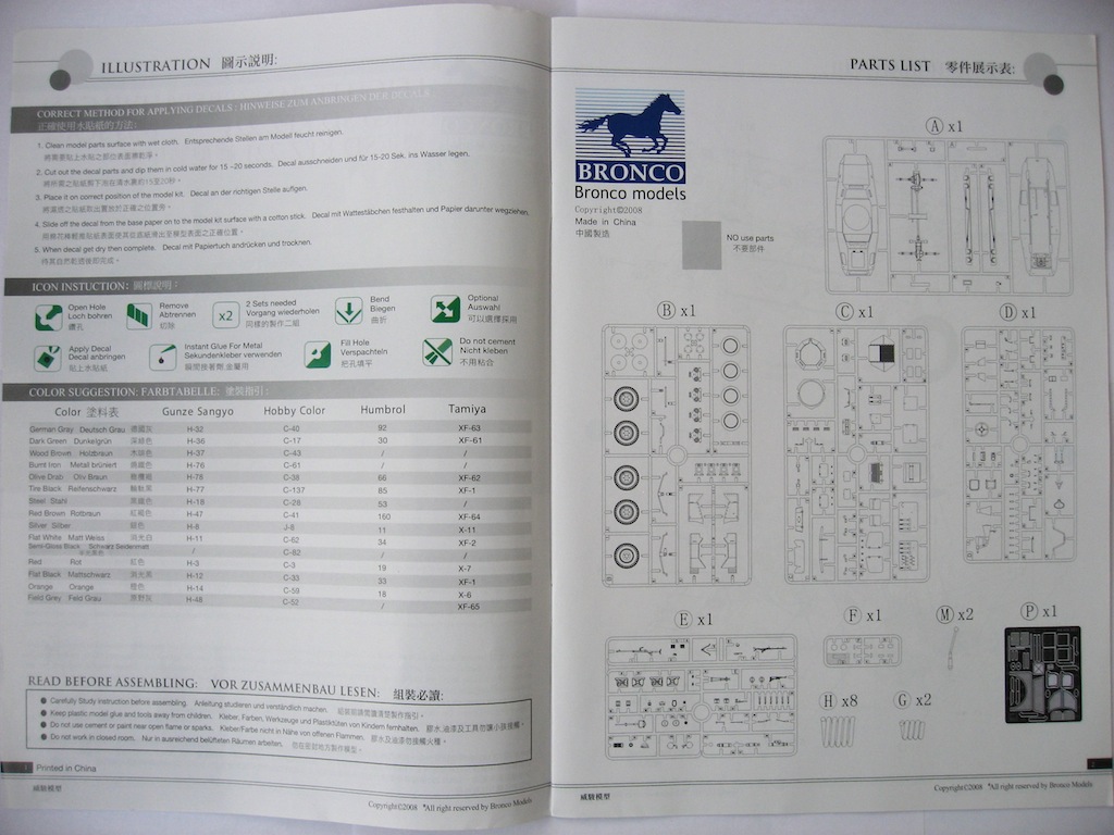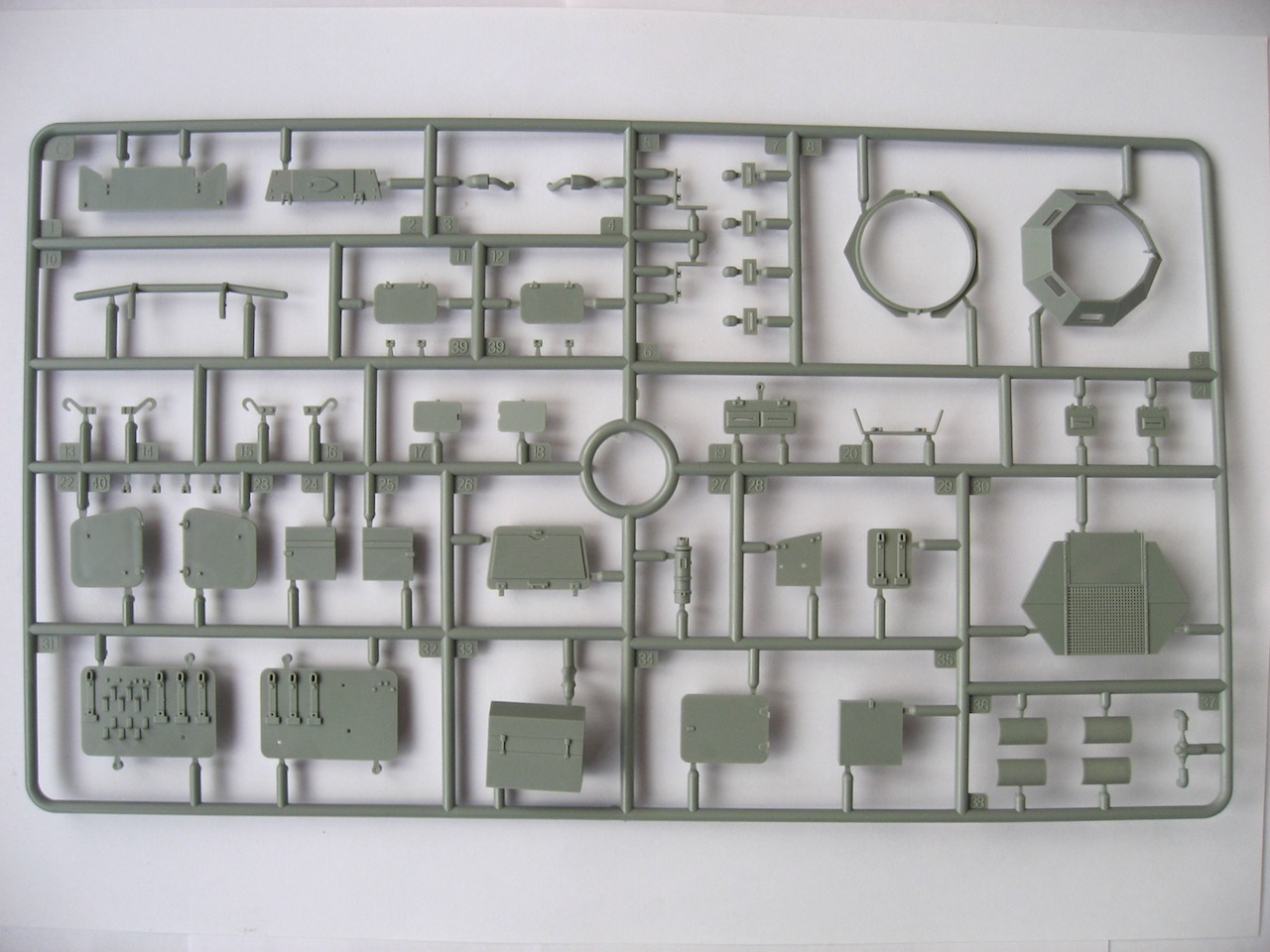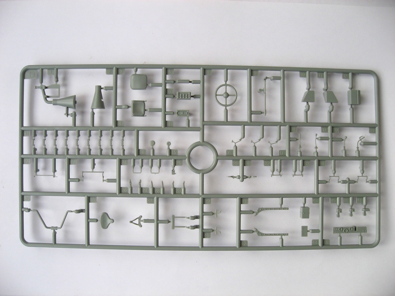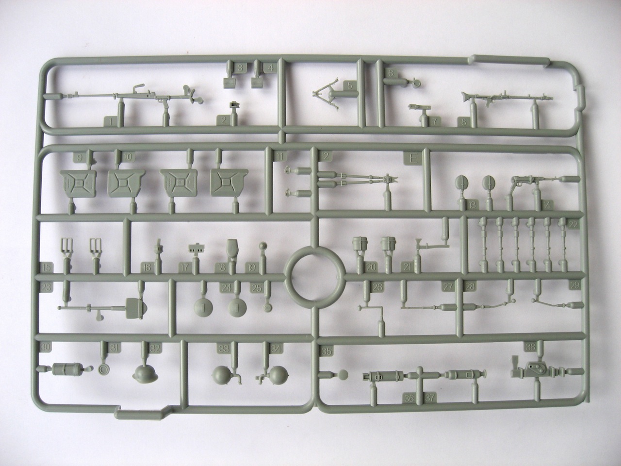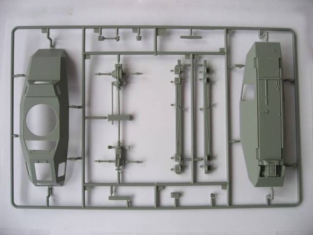 Набор хороший. Пять литников с деталями. Плата фототравления. Металлические усы на крылья. Пружины на ходовую. Очень богатый интерьер (не знаю, делать, нет). Дается легкое, противотанковое ружье. Четыре варианта декалей, окрас одинаковый. Очень рельефный протектор на покрышках. По-моему все.