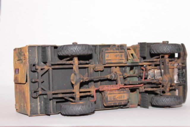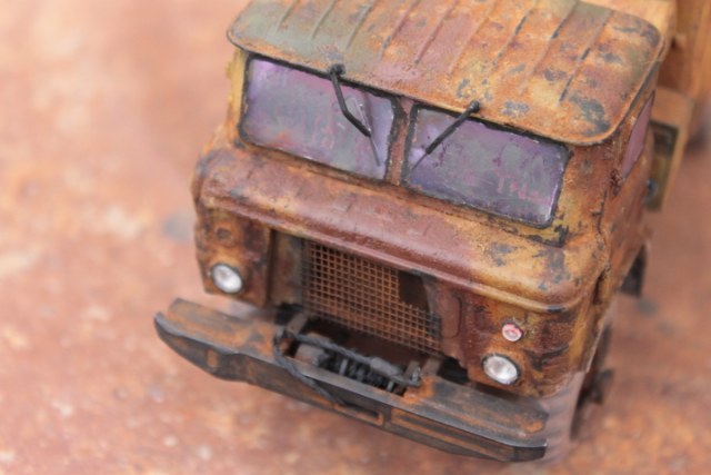 Труда вложено много. и видно большое желание сделать хорошо. Но результат доволно двойственный, зрительно не очень получилось, и хуже всего ржавчина, выглядит так как будто заржавела сама модель. Очаги ржавчины очень крупные, реальная машина давно бы развалилась.