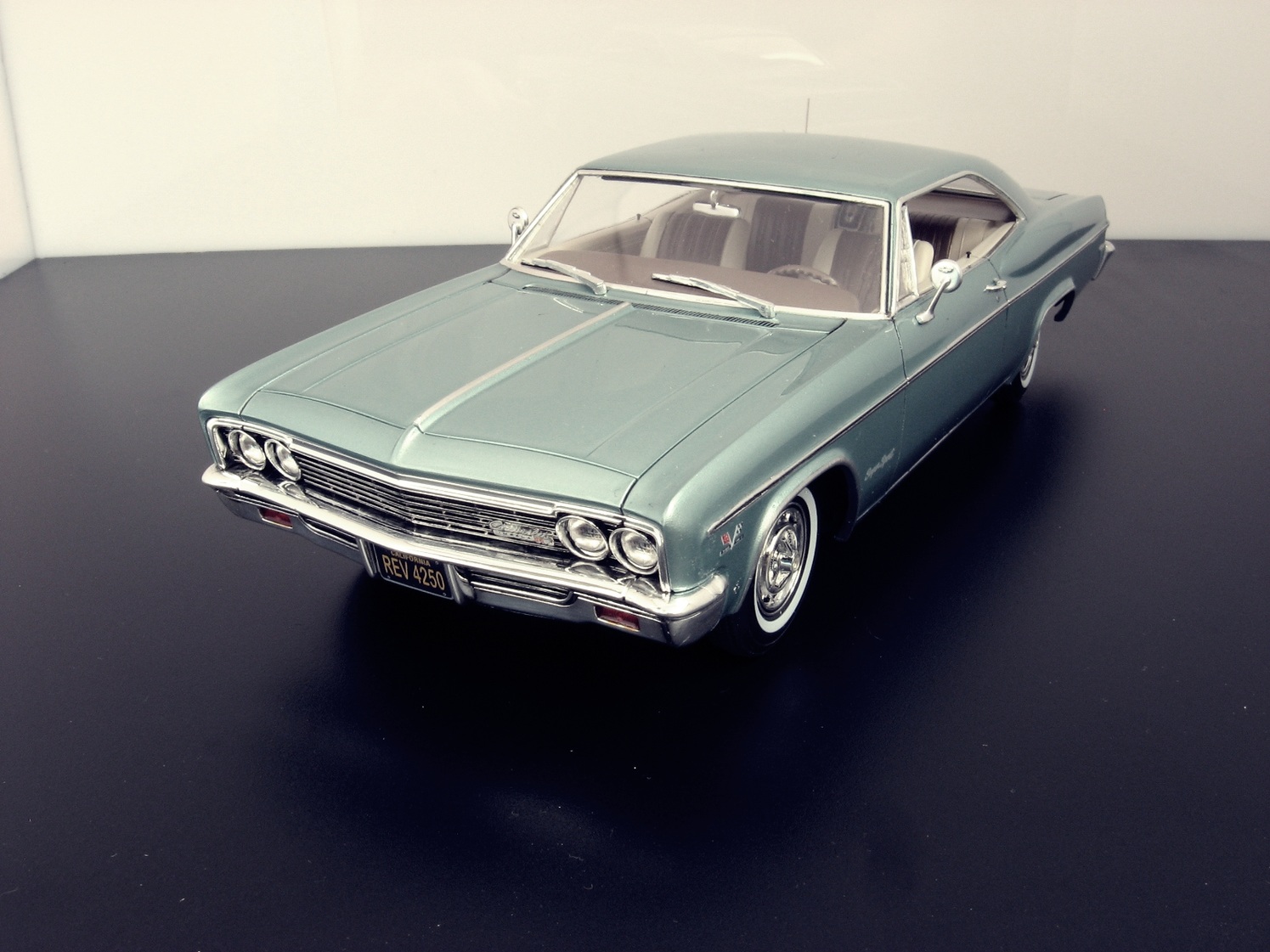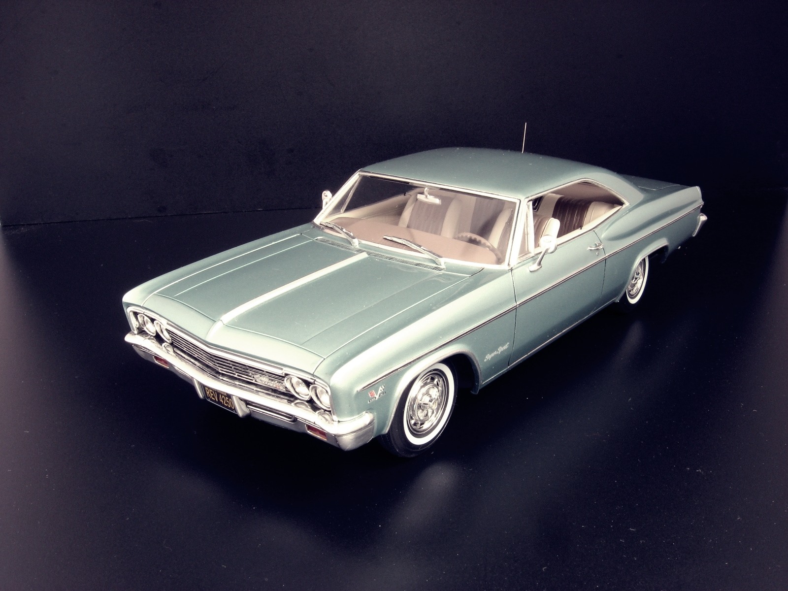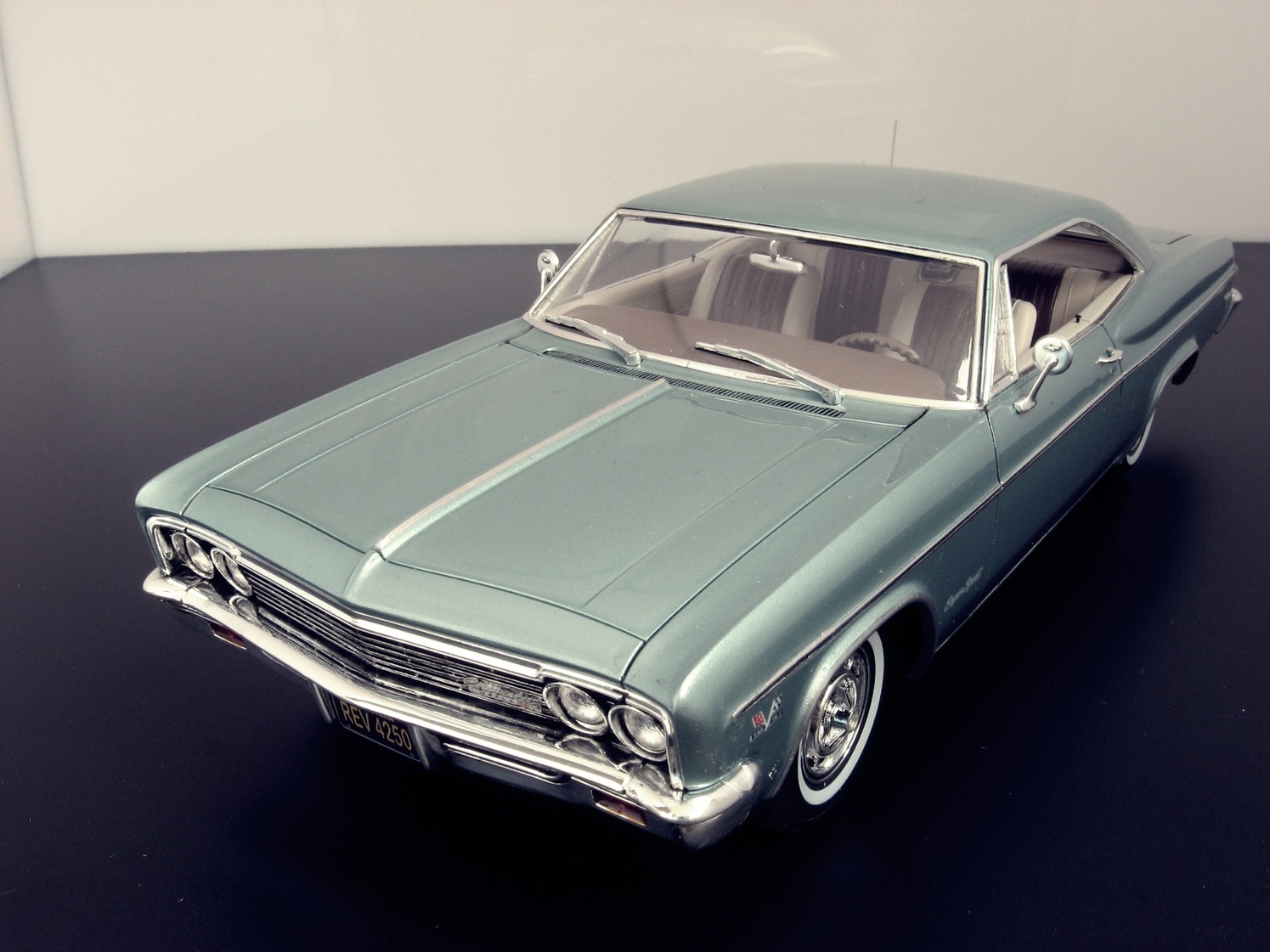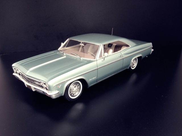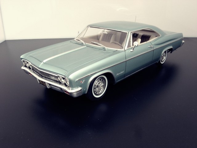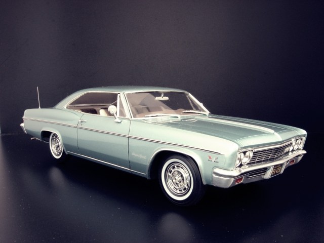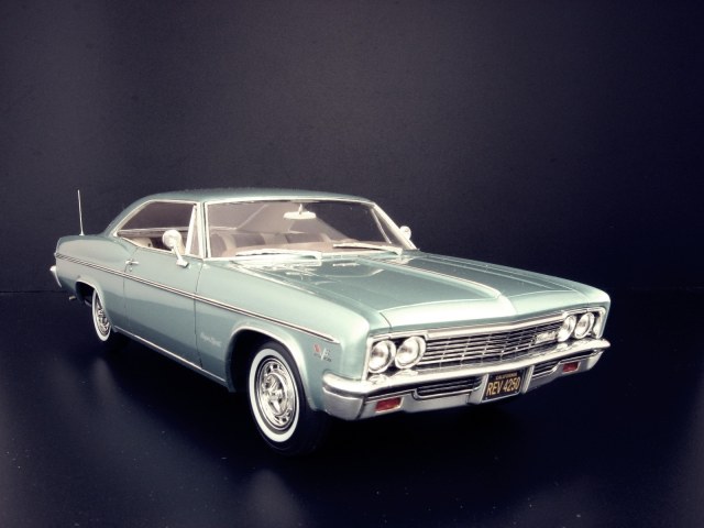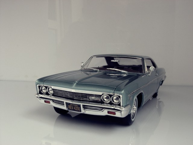 Уважаемые коллеги представляю на ваш суд крайнюю законченную модель.После Крайслера от АМТ сборка Импалы доставила огромное удовольствие.Собиралась почти как TAMIYA ,если не считать некоторых традиционных" косяков" Revell.В связи с погодными условиями фото сет на улице сделать было не возможно,но есть и плюсы ,фото делал не как обычно своей цифромыльницей ,а хорошим почти профессиональным фотоаппаратом с подсказками неплохого фотографа.Извиняюсь за большое количество фото,сделал более 300 кадров и очень трудно было отсортировать.Покраска, традиционно профессиональные авто краски + 2к авто лак.Не много использовались краски TAMIYA и Акан .Отделка хромом -фольга BMF
