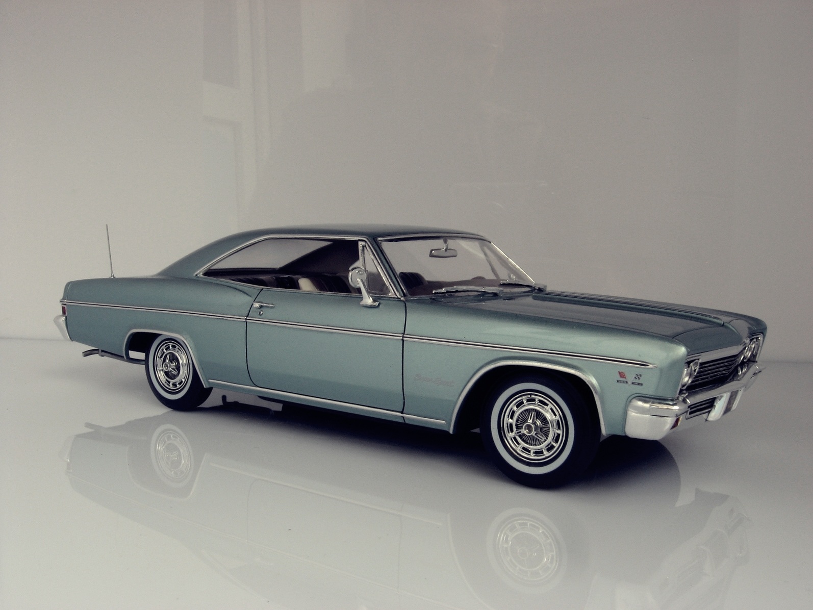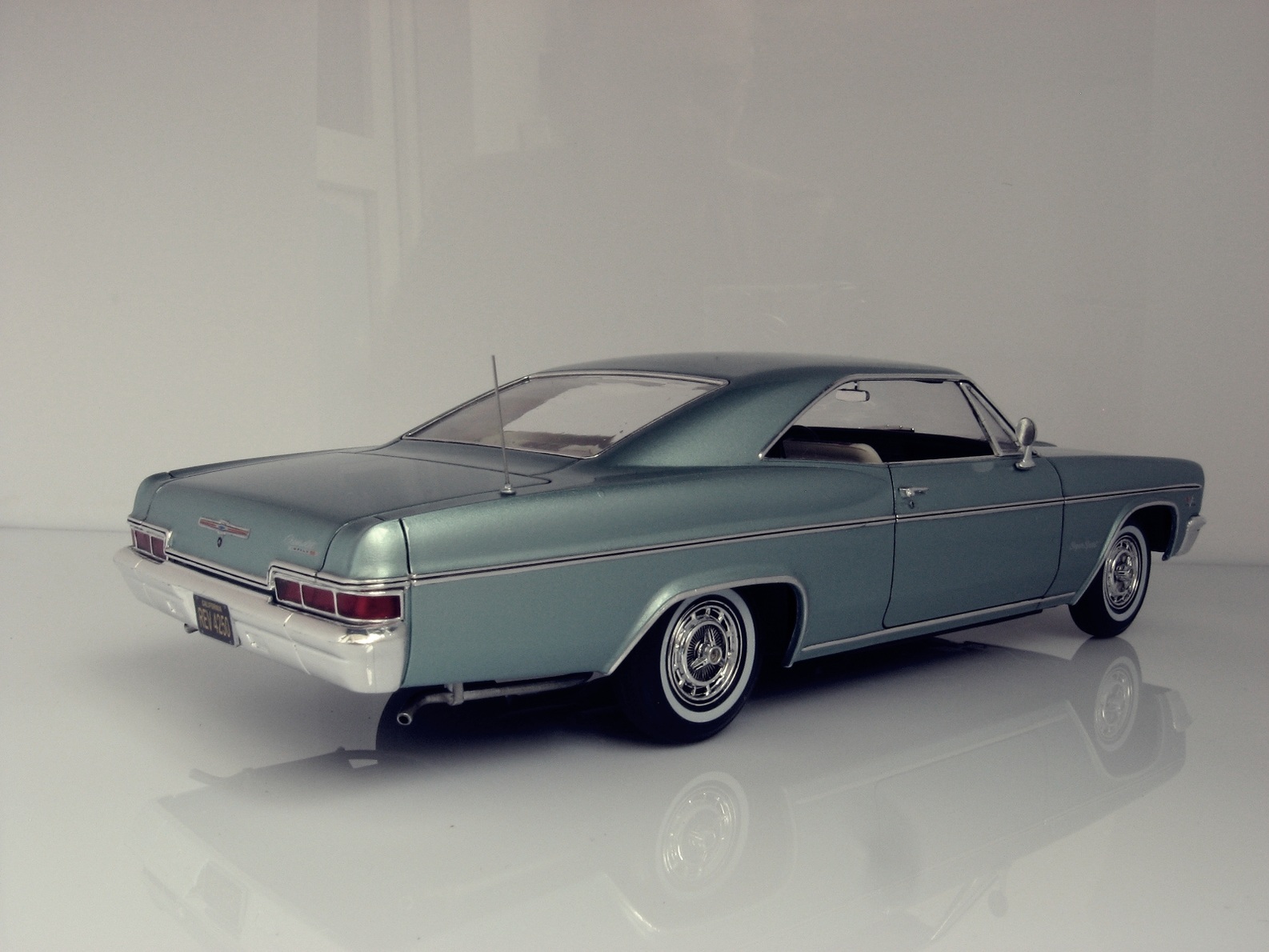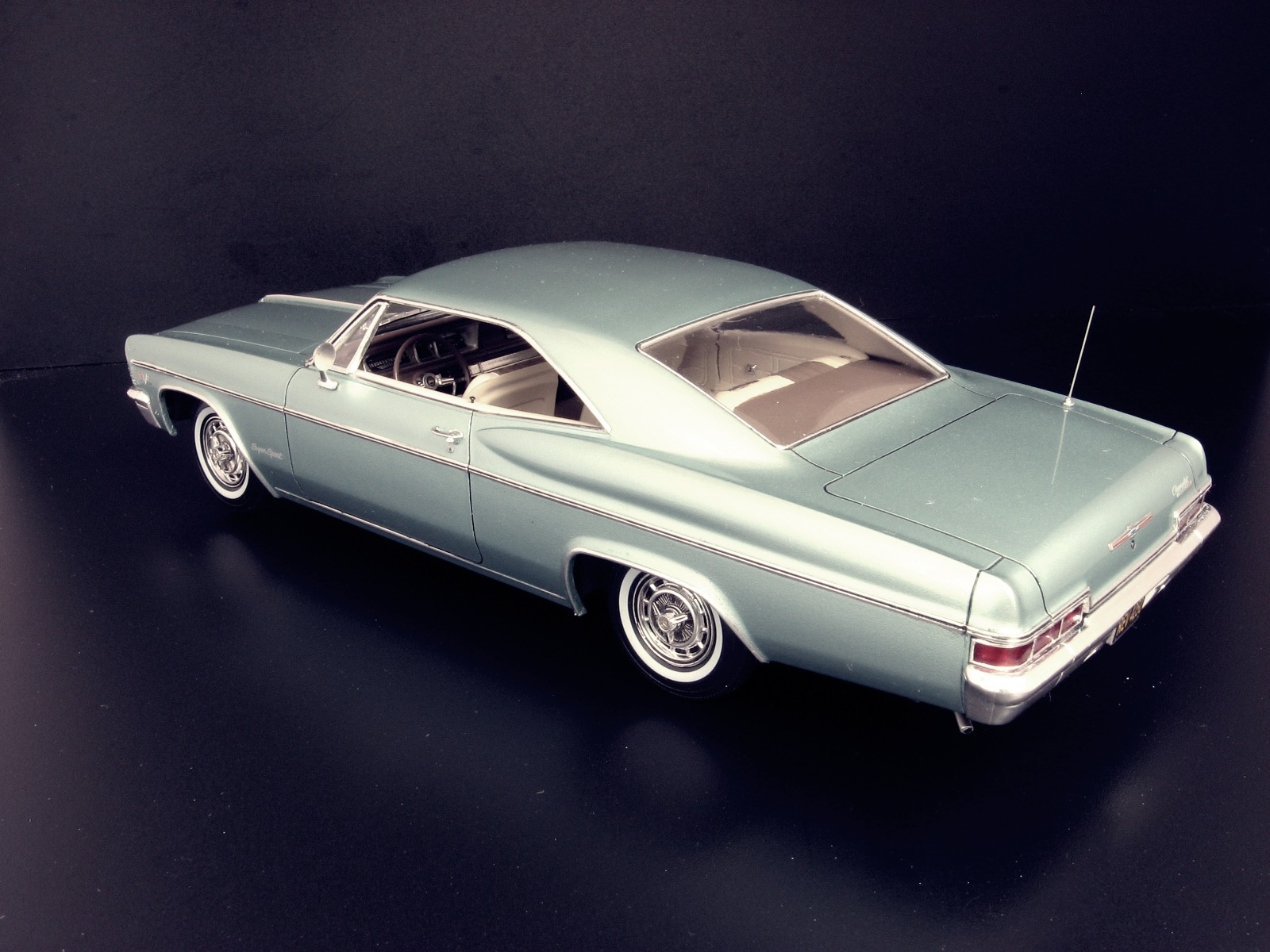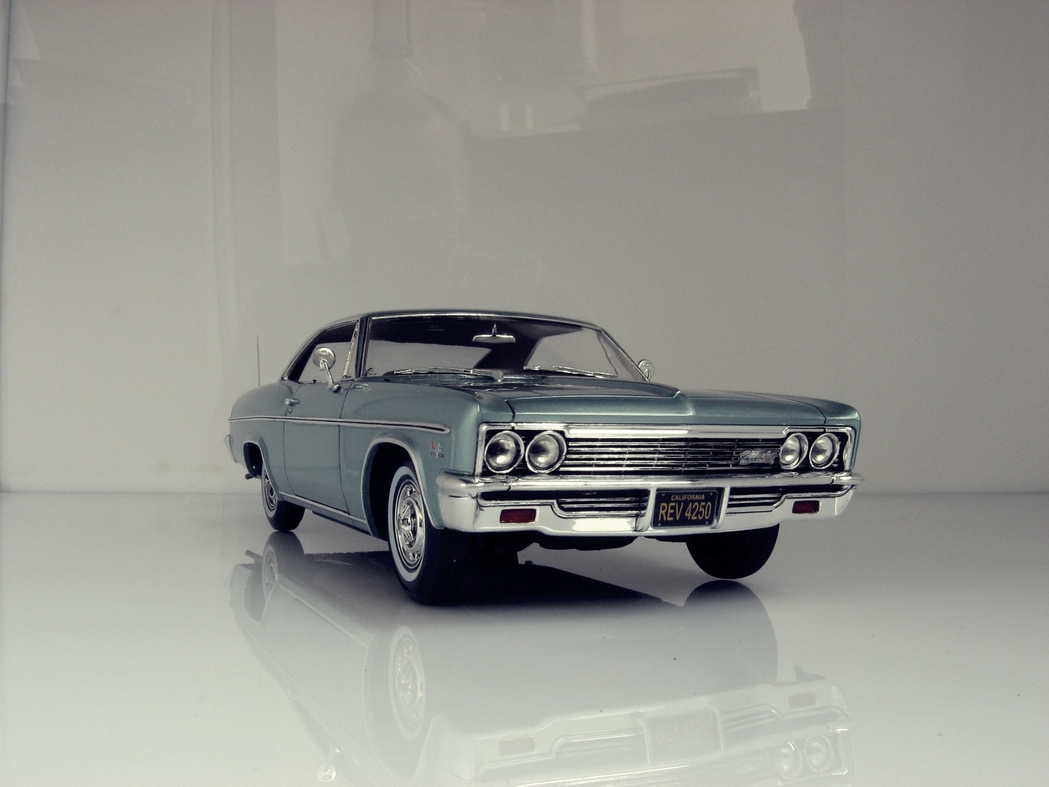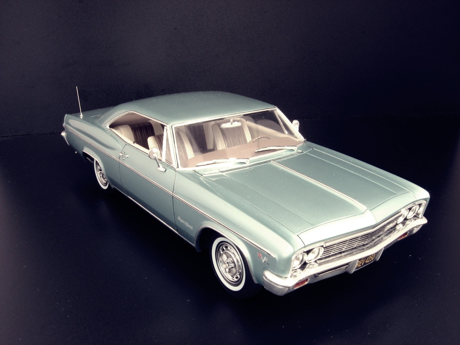 Уважаемые коллеги представляю на ваш суд крайнюю законченную модель.После Крайслера от АМТ сборка Импалы доставила огромное удовольствие.Собиралась почти как TAMIYA ,если не считать некоторых традиционных" косяков" Revell.В связи с погодными условиями фото сет на улице сделать было не возможно,но есть и плюсы ,фото делал не как обычно своей цифромыльницей ,а хорошим почти профессиональным фотоаппаратом с подсказками неплохого фотографа.Извиняюсь за большое количество фото,сделал более 300 кадров и очень трудно было отсортировать.Покраска, традиционно профессиональные авто краски + 2к авто лак.Не много использовались краски TAMIYA и Акан .Отделка хромом -фольга BMF