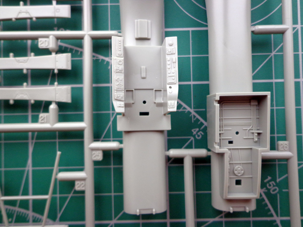 Во многих обзорах пишут об относительной схожети этих китов, и отмечают прекрасную стыковку и деталировку Hasegawa, зато у Academy открыт оружейный порт и дан двигатель с тележкой и не нужно удалять