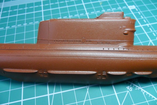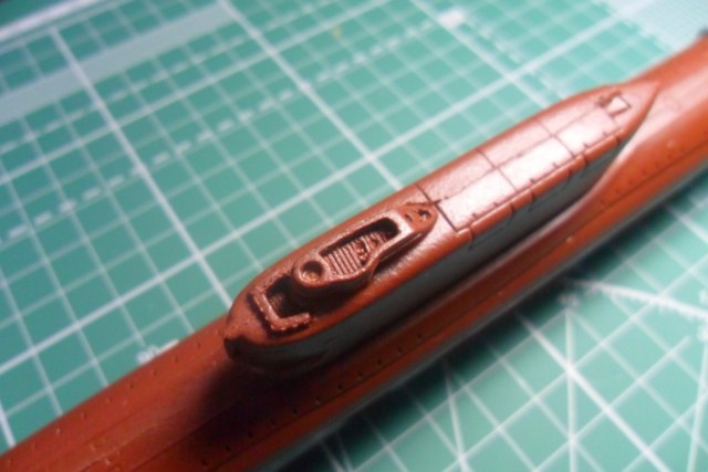 Модель ПЛ отлита из смолы красно-коричневого цвета. Все шпигаты, решеточки, рули и т.д. отлились качественно. Имеется небольшой облойчик из-за стыковки формы от левой и правой половинок, но это легко устранимо. Чуточку сбилась палубная расшивка - это уже проблемка посерьезней.