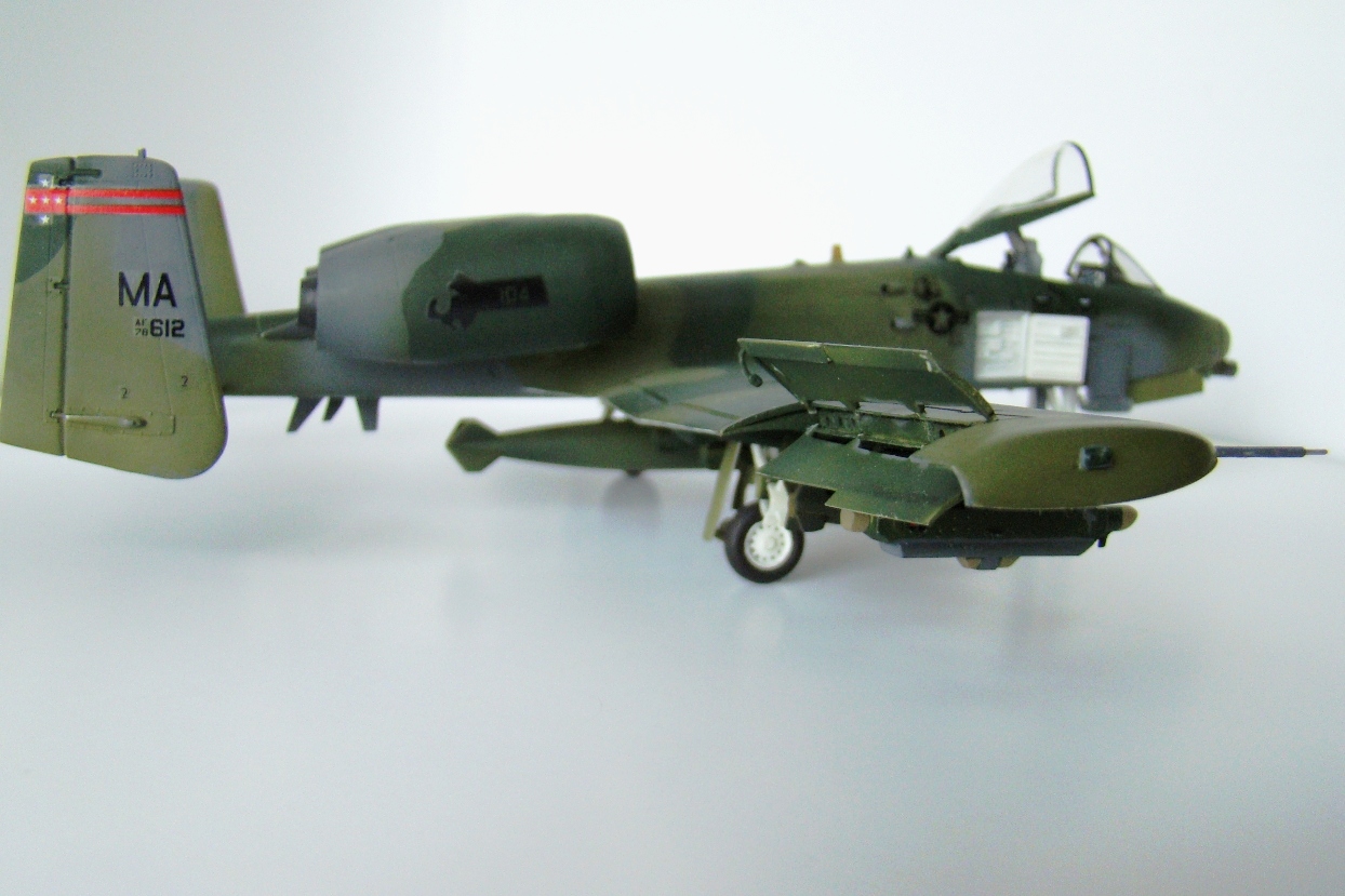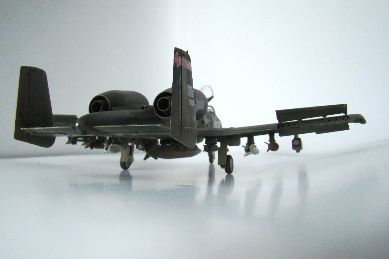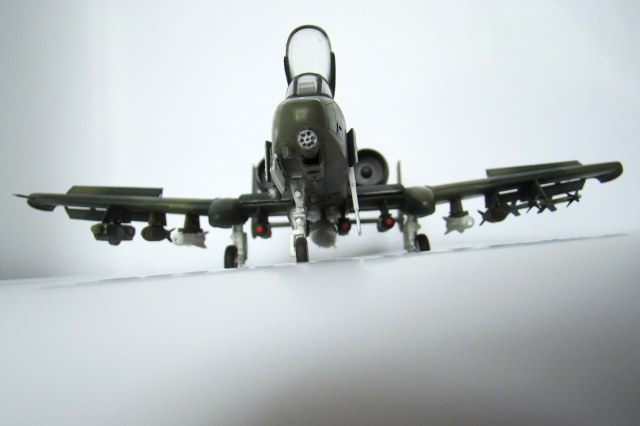 Здравствуйте, представляю модель американского бронированного одноместного двухдвигательного штурмовика, разработанного для уничтожения танков, бронемашин и прочих наземных целей. Назван в честь истребителя-бомбардировщика Второй мировой войны P-47 «Thunderbolt». По обзорам прочитанным в сети, пришел к выводу, что модель от фирмы ITALERI, на данный момент наиболее предпочтительна для сборки в масштабе 1/72. Желание купить модель A-10 Thunderbolt II появилась у меня давно и связанно было с необычным внешним видом самолета, и стало непреодолимым после просмотра фильма «TERMINATOR SALVATION». Модель хорошо детализирована, имеет тонкую внутреннюю расшивку, стыкуемость удовлетворительная. Не понравилось, что приборные панели даны декалью. Самолет окрашен в предложенные инструкцией цвета, с помощью аэрографа.