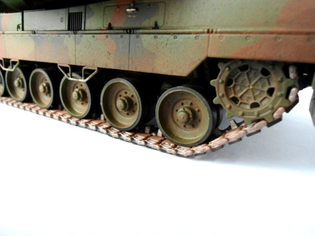 На счет беговых дорожек: беговой дорожкой является часть трака (гусеницы), которая непосредственно соприкасается с опорной частью (бандажом) катка. На счет дорожек я ошибся - на Лео они не резиновые, а стальные.