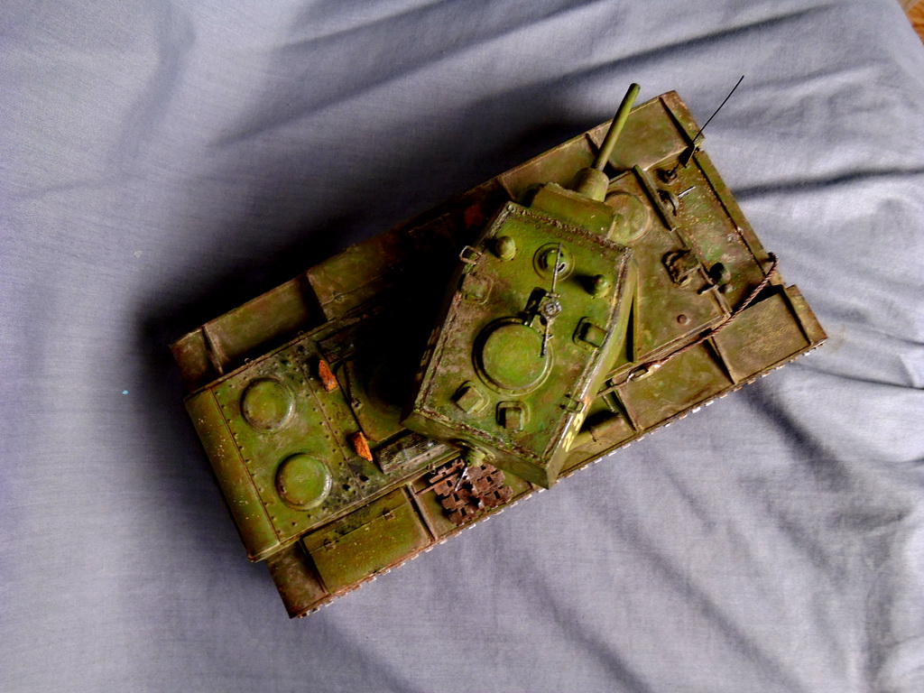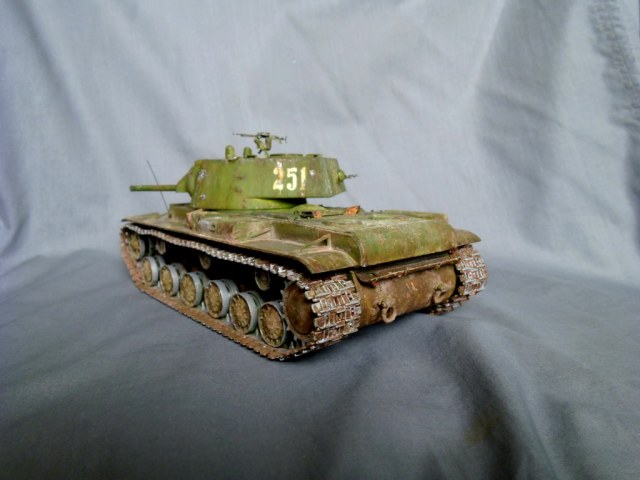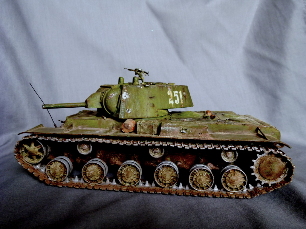А КВшка мне нравится, есть проблемка с задней левой гусеницой сзади. Да и потёртости до металла на мой взгляд на шасси разного цвета сделать. Всётаки броня и воронёная сталь - разные материалы , и на катках: сила качения меньше силы скольжения.