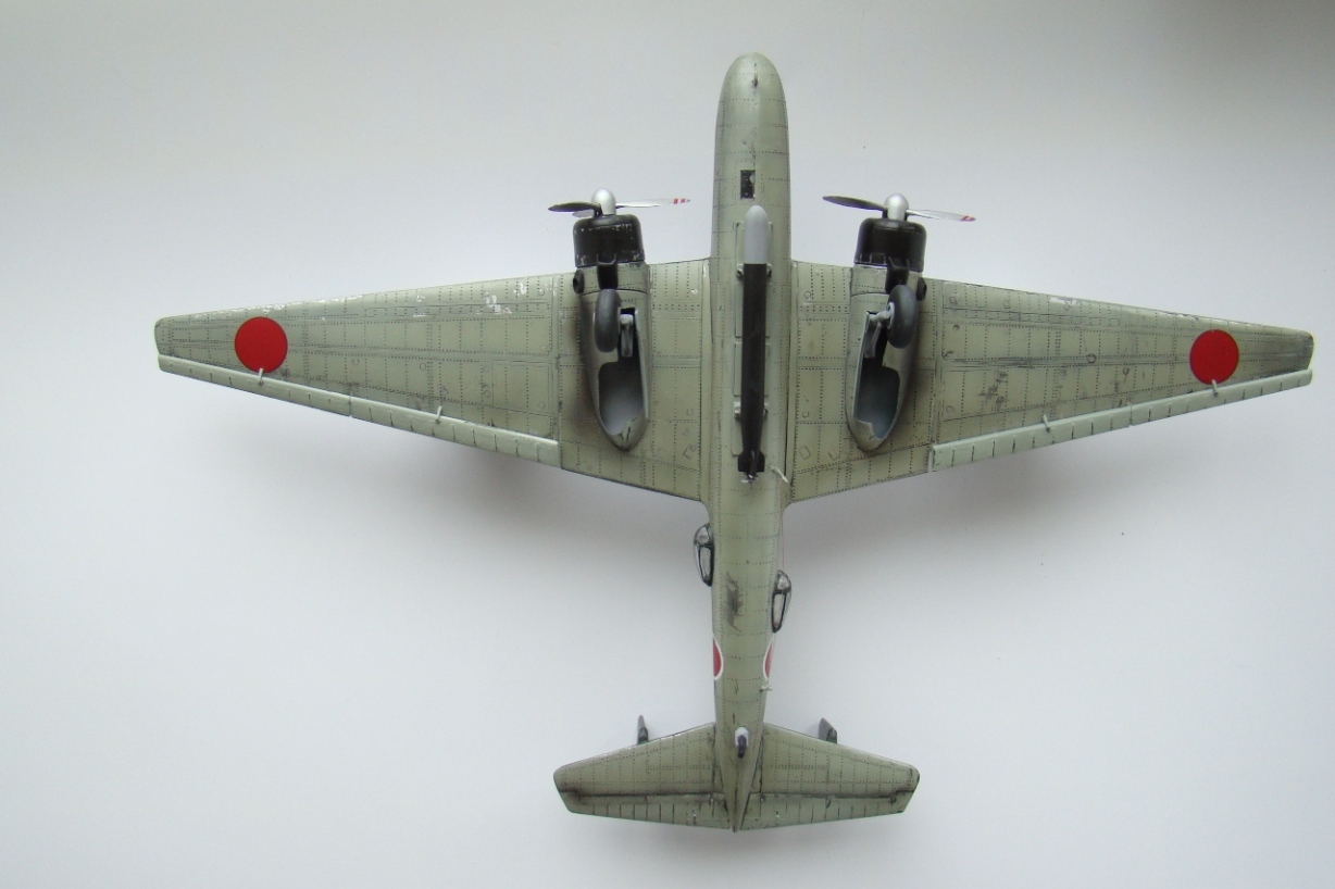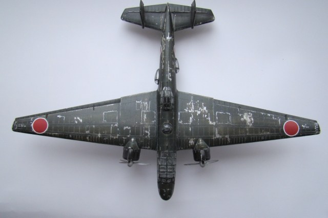 Собирая модель стояла задача попробовать солевой метод обдиринга, раз обдиринг значит японец. Выбор пал на морской бомбардировщик "нелл". Понравилась клепка, хотя для данного масштаба клепка великовата. Из явных минусов отсутствие интерьера, его практически нет, даже в кабине пилотов.