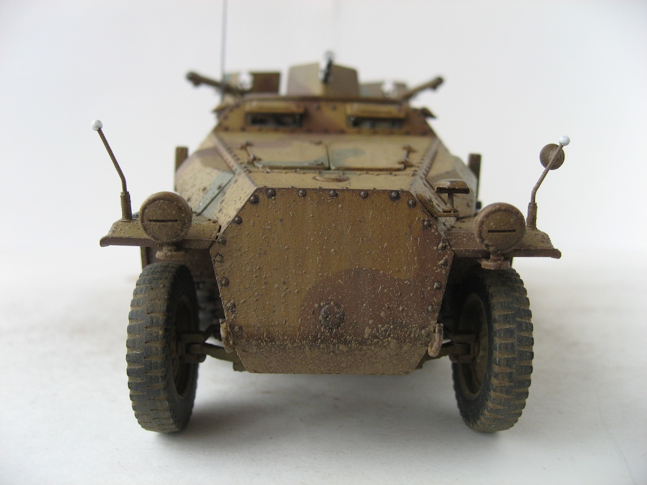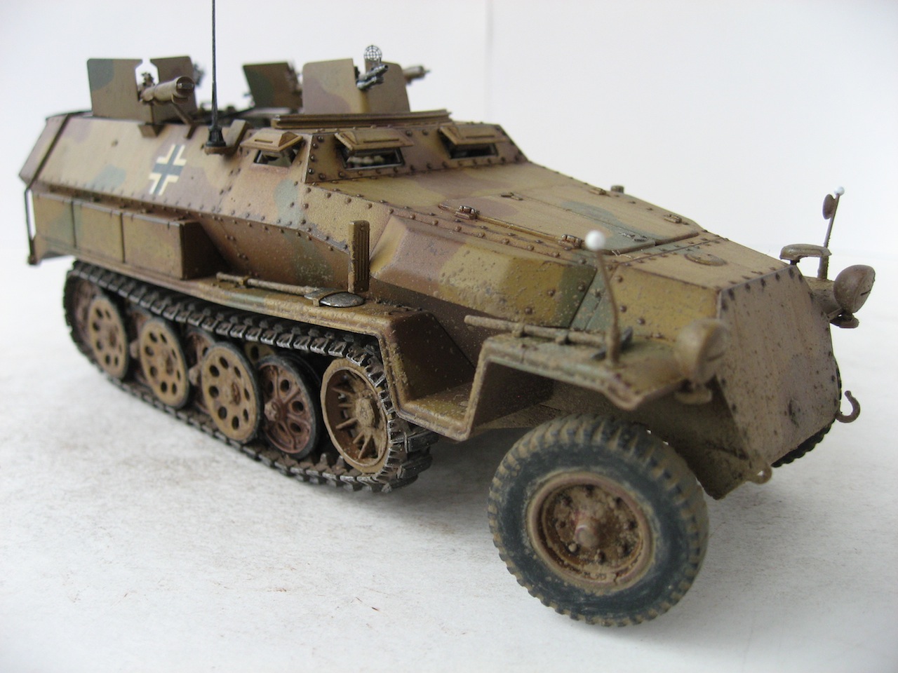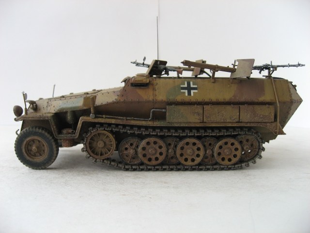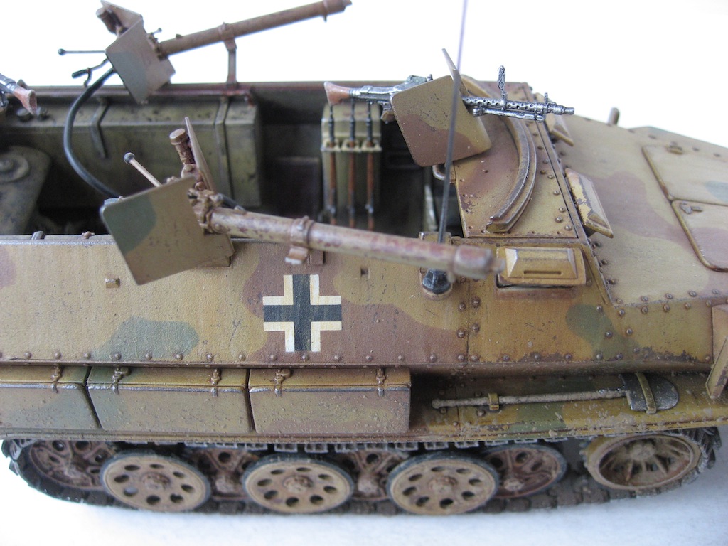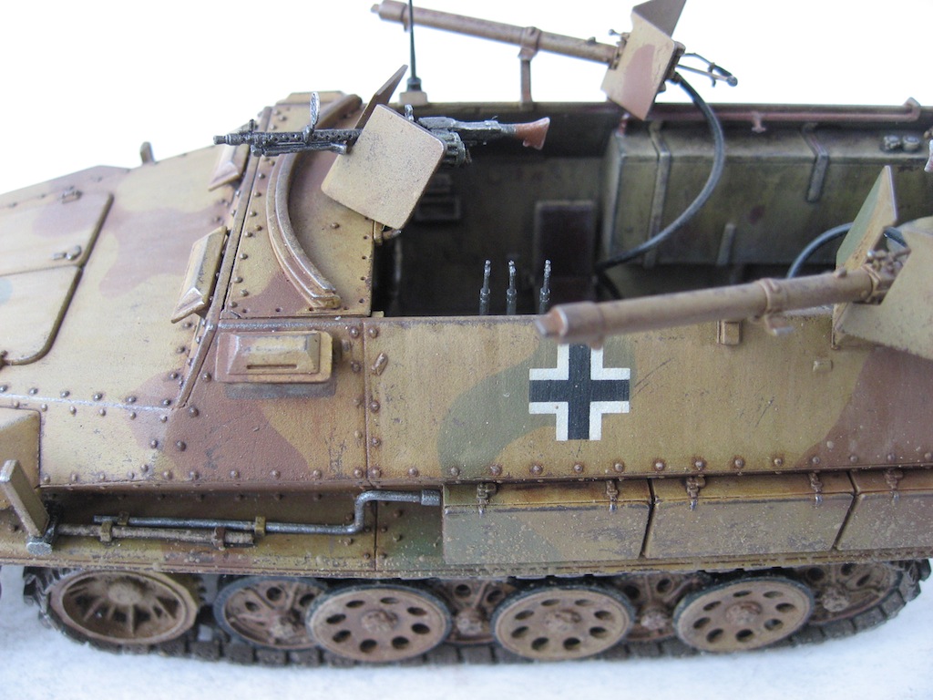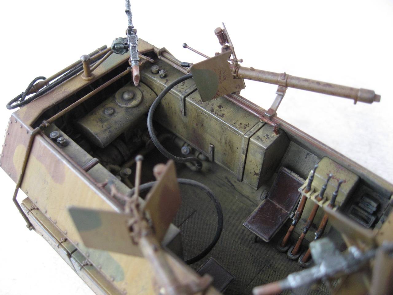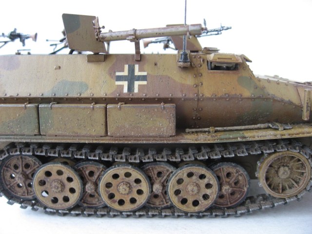 Собиралась модель отлично. Много мелких деталей. Только компрессор для огнеметов собирал, почти, целый день. А так все очень достойно. Делал из коробки, добавил только антенну и шланги к огнеметам. Красил акрилом Tamiya. Масло и пигменты MIG.