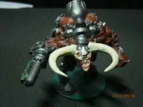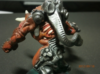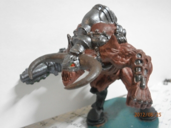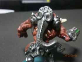 Точного производителя модели не знаю, указал компанию распространителя. Фигурка Кибердемона для настольной игры DOOM. Суть в чём: представленная покраска весьма проста. Решил выложить и обратиться за помощью. Проблема в том, что я не знаю как быть с его мордой, перекрашивал и так и эдак и всё равно получается какая-то пошлость. Помогите советом пожалуйста.
