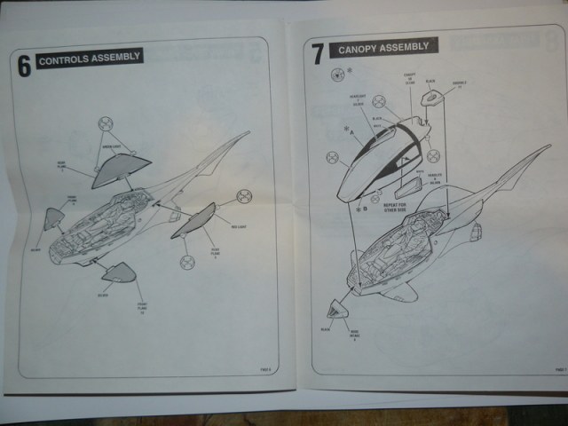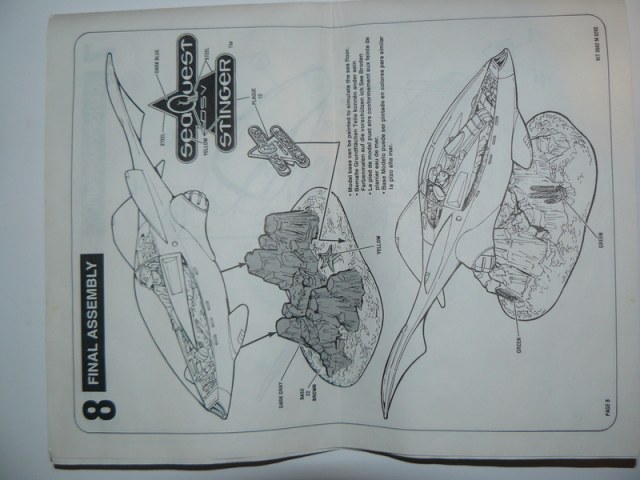 Открыв каробку мы видим три литника с деталями стеклянный колпак самой лодки,довольно подробную инструкцию на восми страницах,декаль и подставку сделанную в виде рифа,идущею отдельной деталью.Длина корпуса лодки примерно 30 см