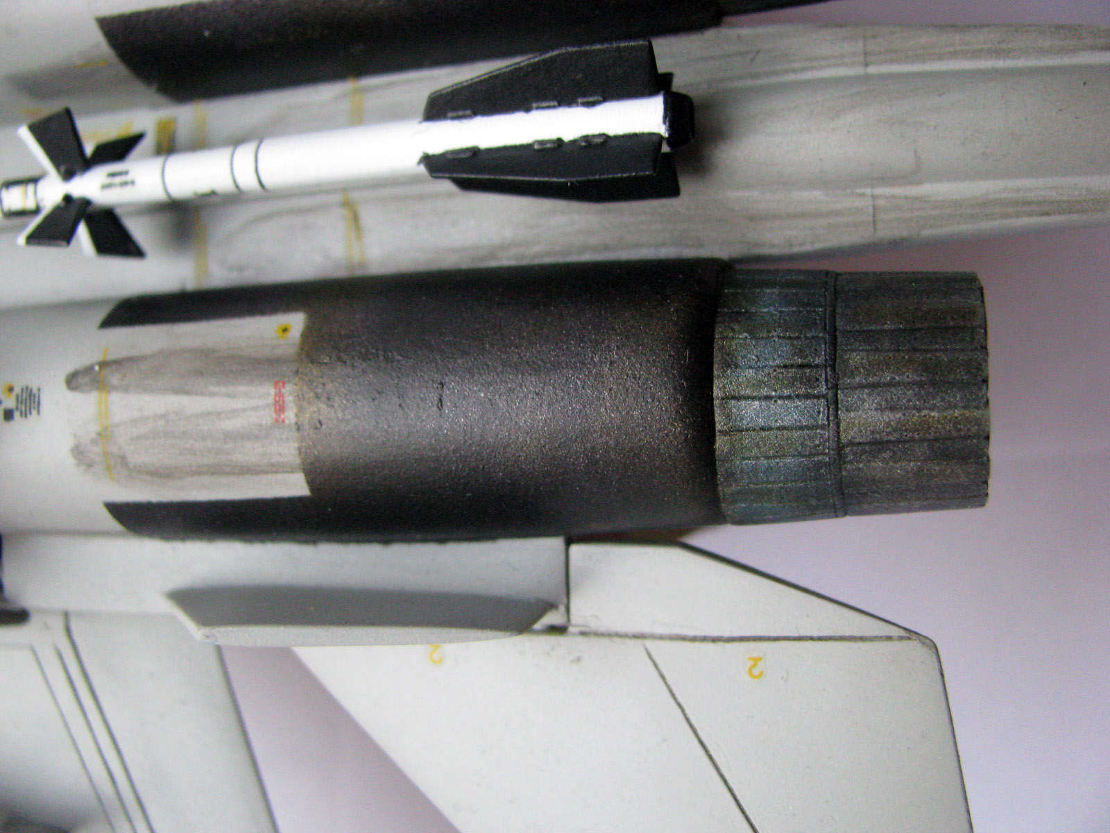 В наборе от ICM эти ракеты идут со стабилизаторами, больше похожими на квадратные призмы, а мараться и делать решётку я не хотел, да и пристально всматриваясь в эти фотки подумал, а почему бы и так не оставить: