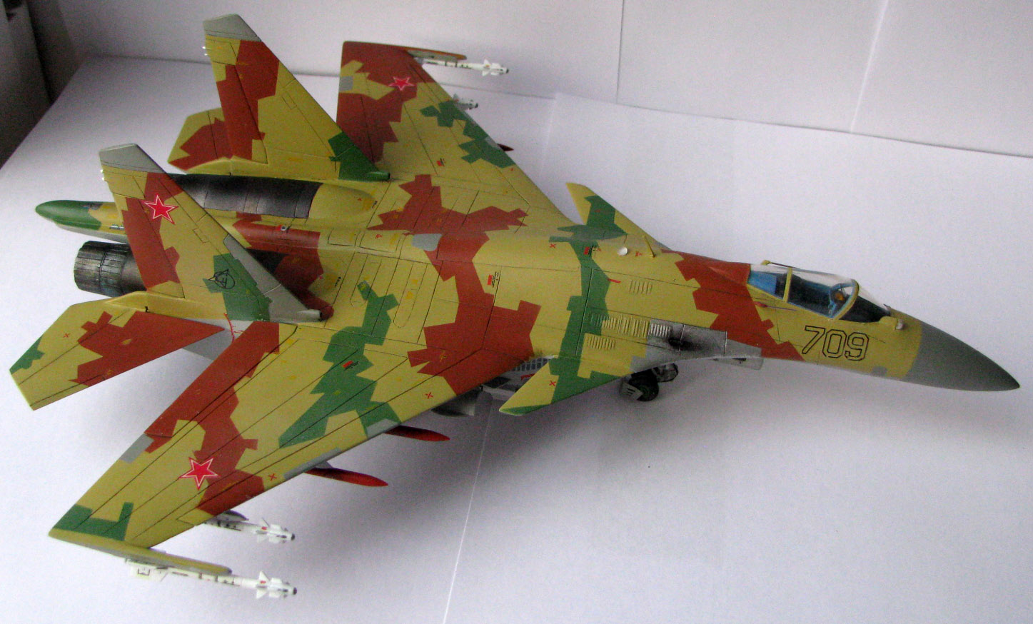 Знаю, что в ходе постройки этой модели мною были допущены косяки: не те кили, например, поставил… и, конечно же, не попал в цвета, поэтому прошу на это не заострять внимания, но критиковать жёстко, т.к. Су-27УБ от Академа в 48 масштабе уже ожидает своей очереди.