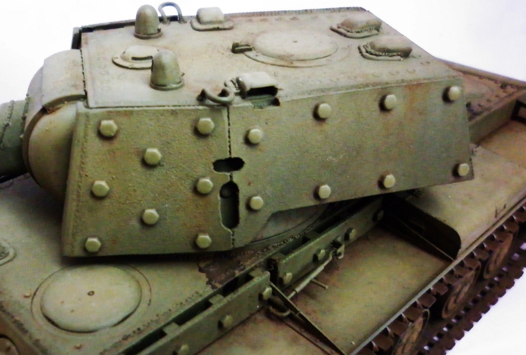 на корпусе до метала потертости ток на тех танках по которым дети в музеях лазяют и на модели это не смотрится (ИМХО),а про траки я молчу,там до металал все содрано и должно быть.И автора никто по блату не хвалит,просто эта модель прогресс по сравнению с его старыми работами.