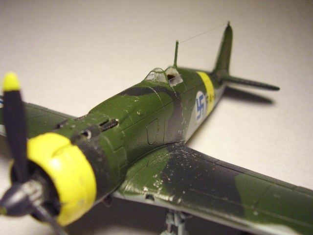 Классика! Масса серьезных доработок на фоне слабой сборки и плохой окраски. Шагрень - скорее всего лак. Воздухозаборник в крыле - это единственное, что я доработал (кроме кроя) на своем. Тупо залили шпаклевкой, тыкнул поглубже скругленным кончиком зуботычки и обработал кромку.