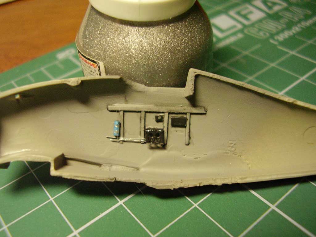 Полностью перерезана расшивка, капот двигателя вытачивался из куска пластика. Вся мелочёвка была взята от модели AML, двигатель и винт от какойто Нововской модели. Ну а остальное всё в ручную.