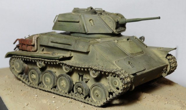 Хороший получился танчик. Обдиринг понравился.ИМХО гусеница темновата, я бы осветлил трущиеся места траков. И еще ощущение, что справа обрыв гусеницы над 2-м поддерживающим катком, видно на 3-м фото.