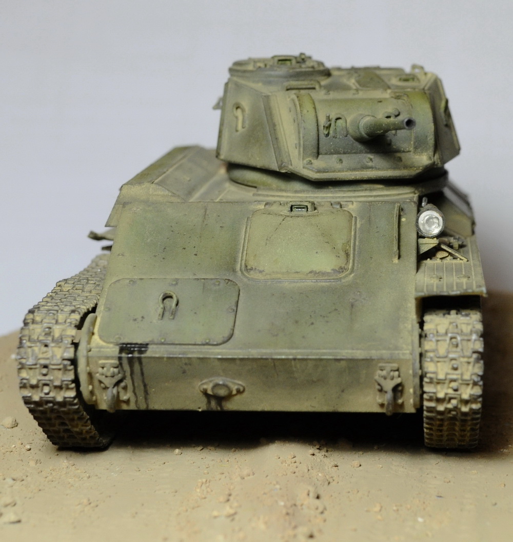 Прикольно получилось, но равномерное запыление и, особенно пыль на ребрах бандажей дают ощущение, что танк долго стоял пылился, и никто в него не лазил давно.