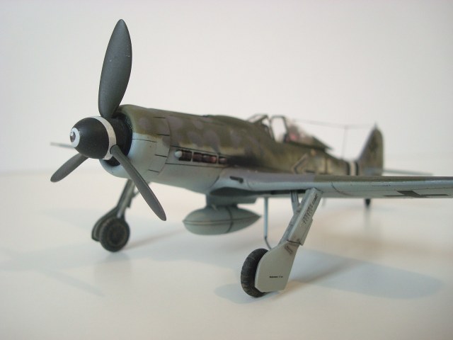 Трудности вызвали нанесение декалей на кок винта, и полосы защиты Рейха, они просто начали ломаться и крошиться, кое как их нанес ( грешу на то, что модель куплена очень давно и деки попросту пересохли).