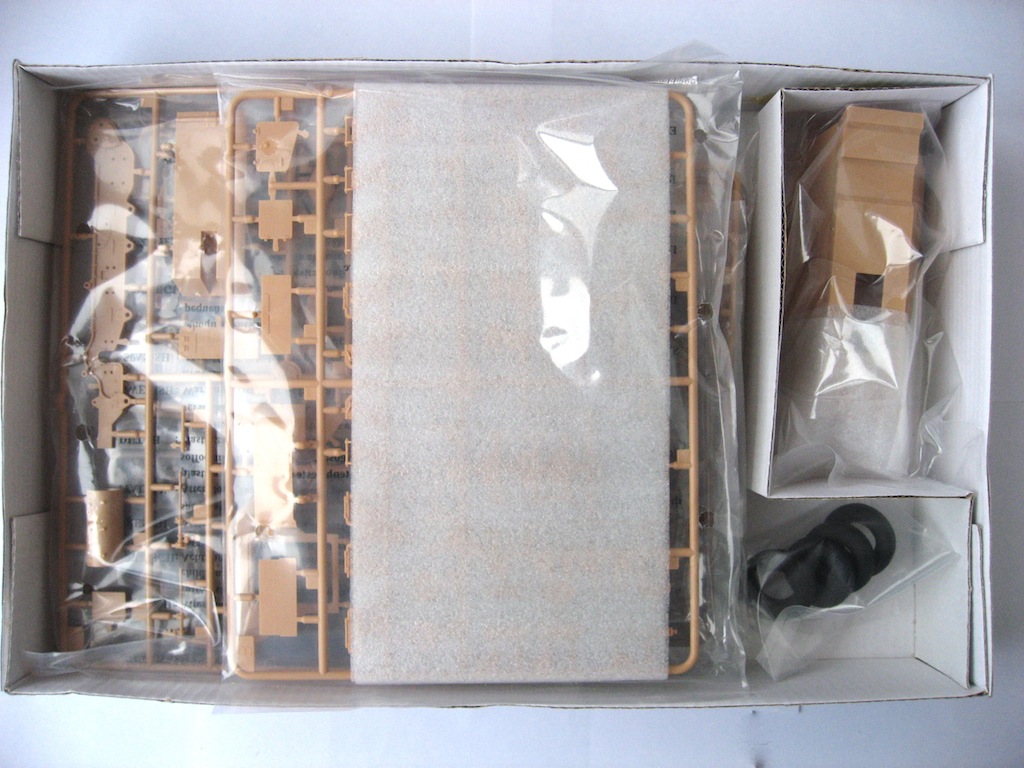 О самом наборе. В начеле, сразу обращает на себя внимание, упаковка. Литники аккуратно (даже можно сказать, с любовью) завернуты в поролон. Пустячек, а приятно. Всего 8 литников с деталями и 12 с наборными траками. Детализация, конечно не Драгон, но вполне достойно. Облоя нет. Плата фототравления, виниловые покрышки. Можно сделать как на колесах, так и на гусеничном ходу. Большая, удобная инструкция. Два варианта окраса: Серый и Африканский корпус. Жалею, что две не купил. Цена вопроса: 1300 рублей.